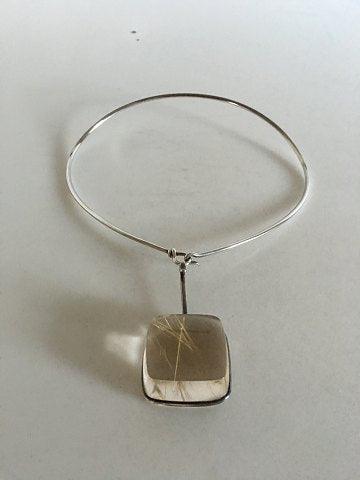 Georg Jensen Sterling Sølv Torun Halsring No 174 med Vedhæng No 132 I Rutil Quartz. Ringens diameter er på 15 cm. Vedhængets mål er 3.5 x 3.5 cm.