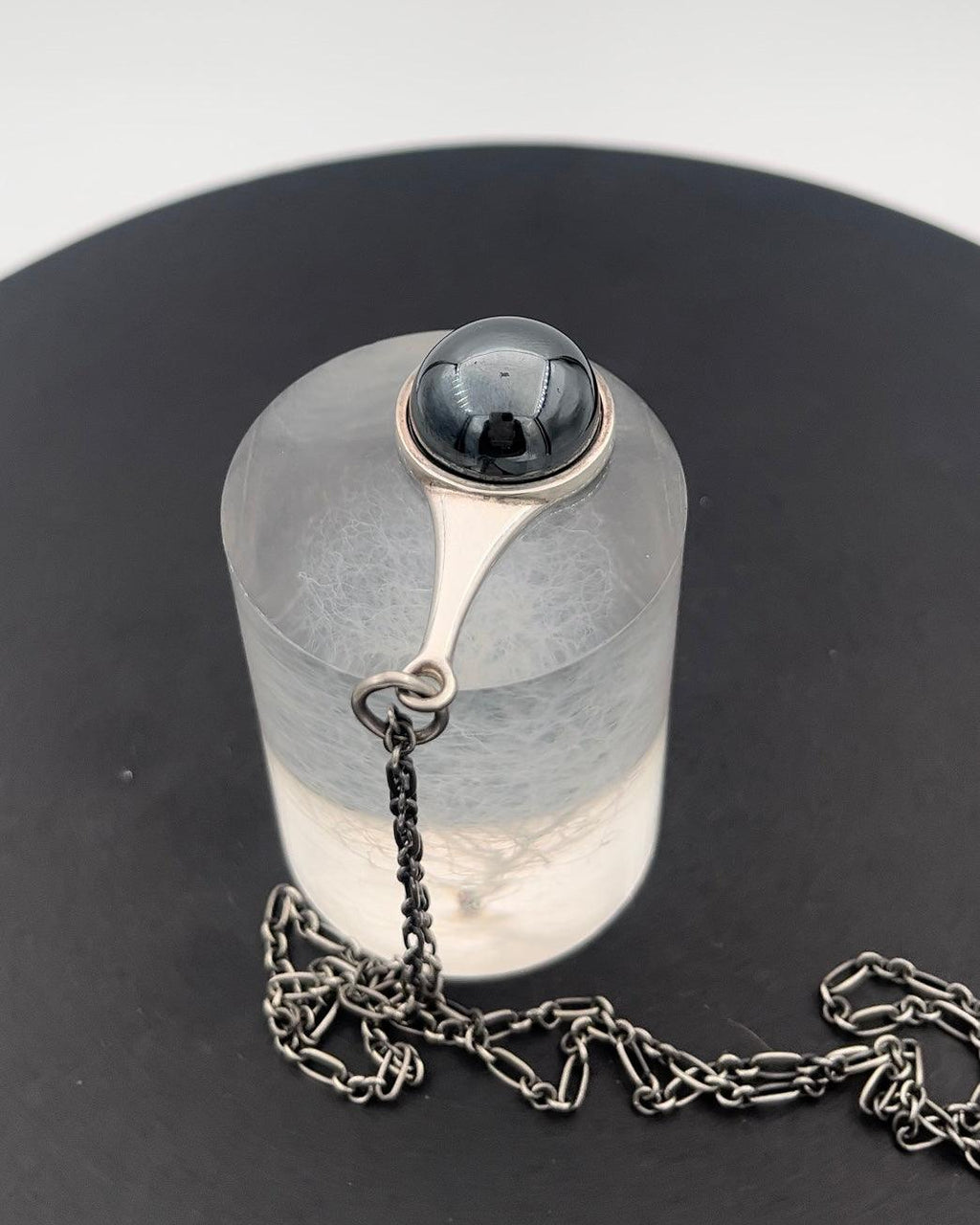 Georg Jensen Sterling Sølv Vedhæng med Hæmatit No 156. Måler 4 cm og kæden 45.5 cm L. Vejer 19,7 g