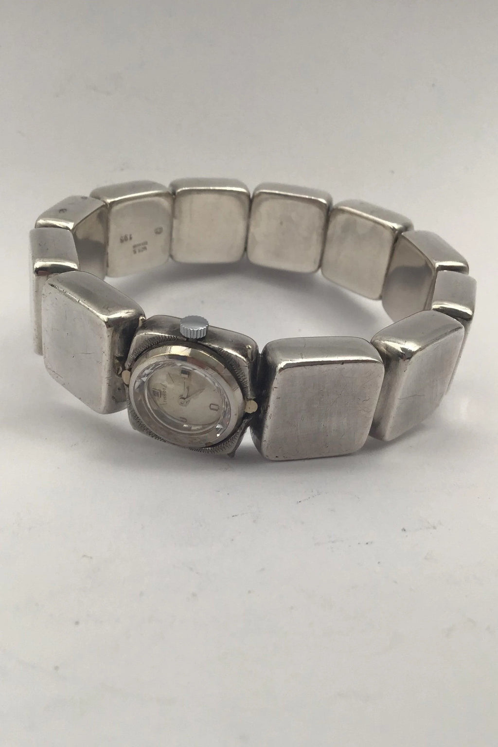 Georg Jensen Sterling Sølv Armring integreret ur No. 196 Astrid Fog Måler Indv. Diam 6.4 cm Vægt 93.7 gr(3.31 oz)