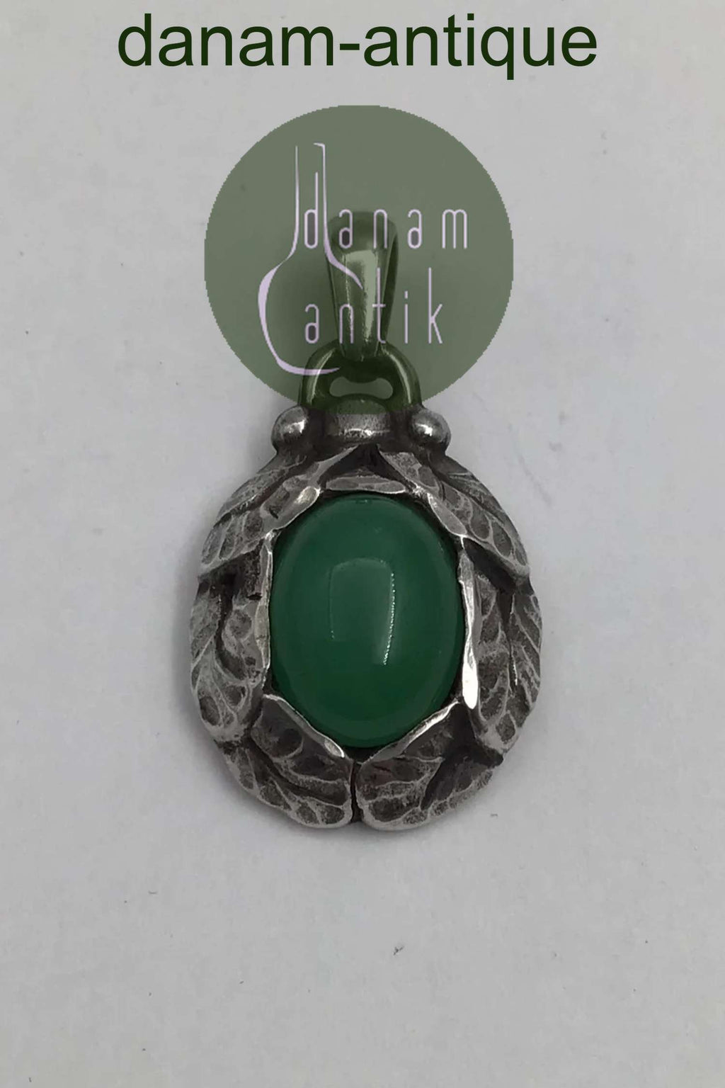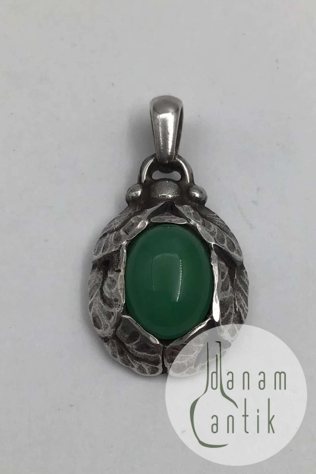 Georg Jensen Sterling Sølv Årsvedhæng 1997 (Grøn Agat) Måler 2.9 cm (1.14 inch) Vægt 7.7 gr. (0.27 oz)