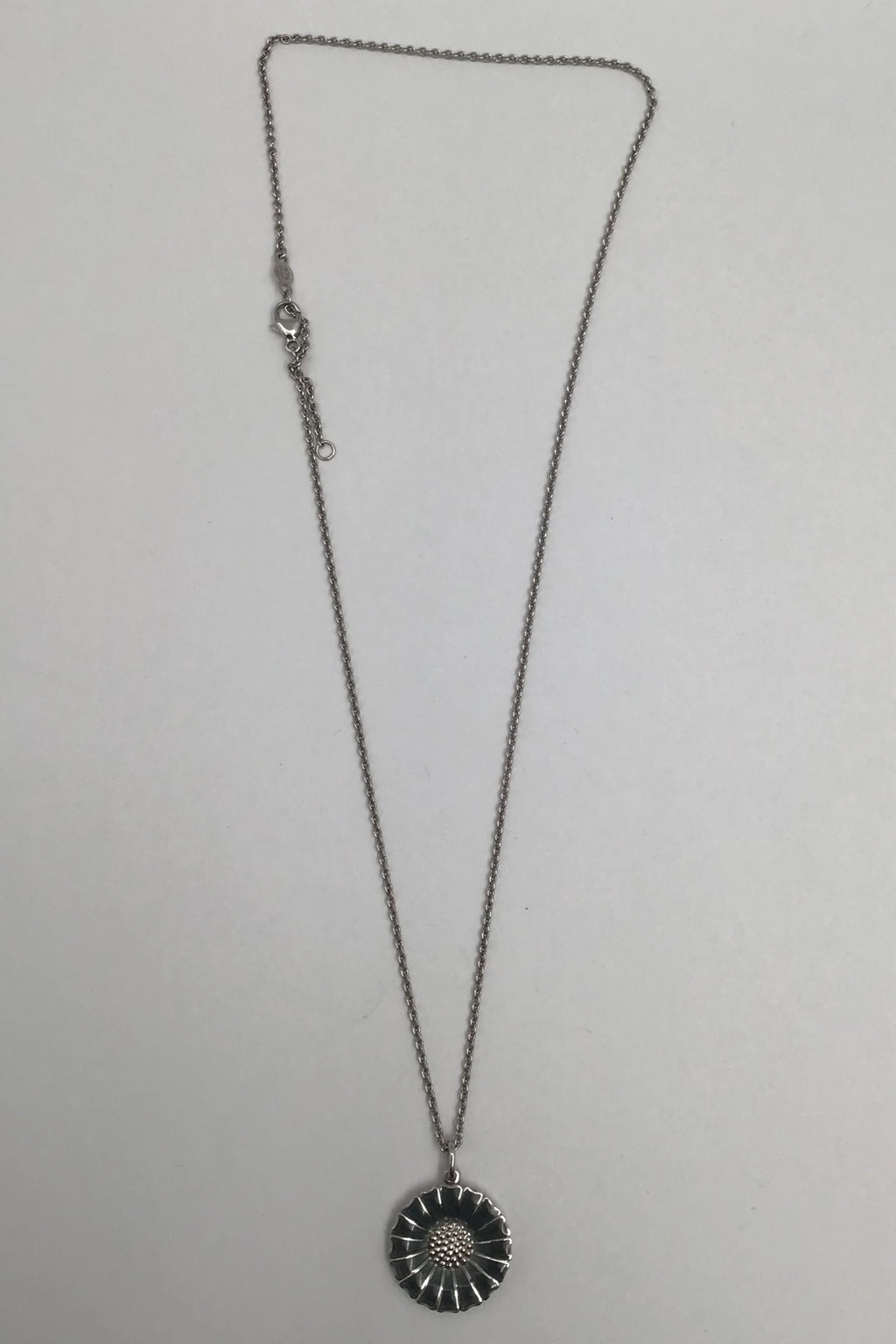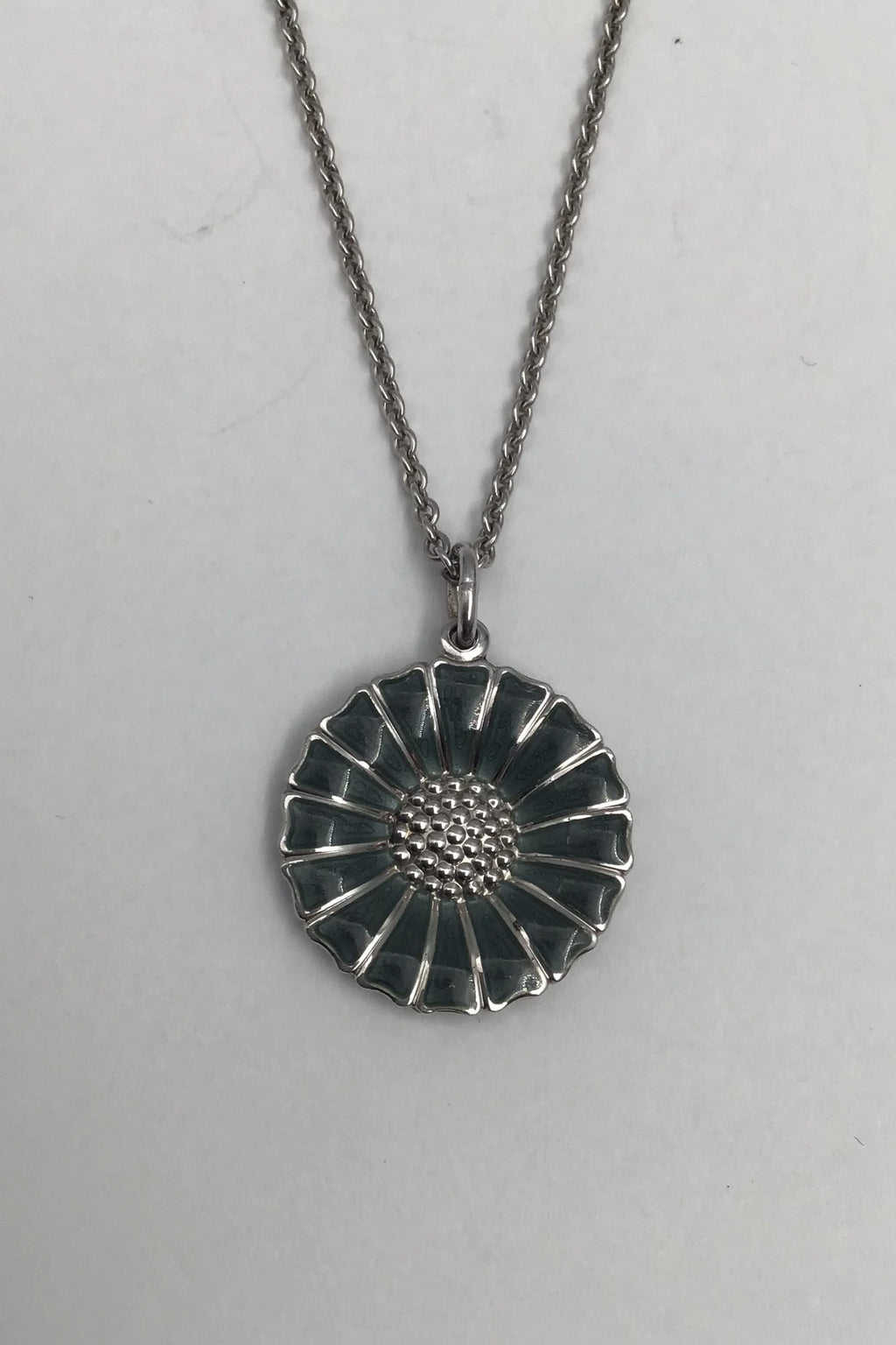 Georg Jensen Sterling Sølv Marguerit Vedhæng Olivengrøn Måler Kæde 46 cm (18.11 inch) Vedhæng Diam 1.7 cm (0.66 inch) Samlet Vægt 5.3 gr (0.19 oz)