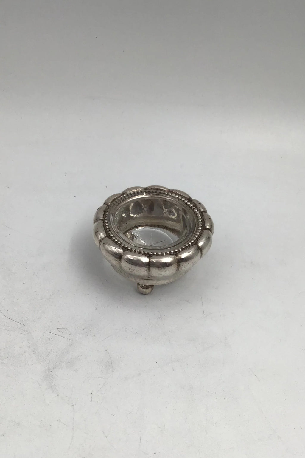 Georg Jensen Sterling Sølv Saltkar No. 64 (1909-1914) Måler H 3.2 cm (1.25 inch) Diam 6.5 cm (2.55 inch) Vægt (inkl. glas indsats) 69.9 gr (2.47 oz) (Engelske import stempler)