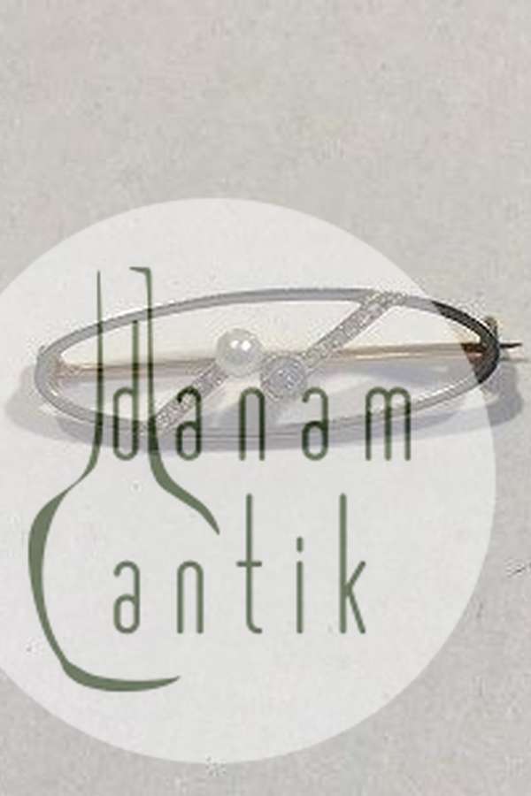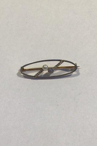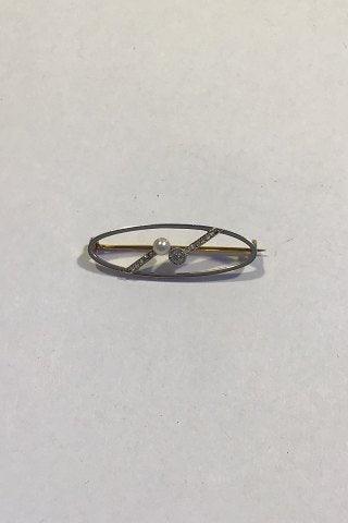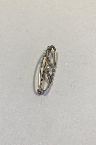 Guld Broche med Perle og Diamant Måler 1.1 cm x 3.5 cm Vægt 3.3 gr (Utydeligt stemplet)