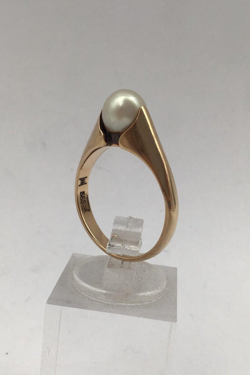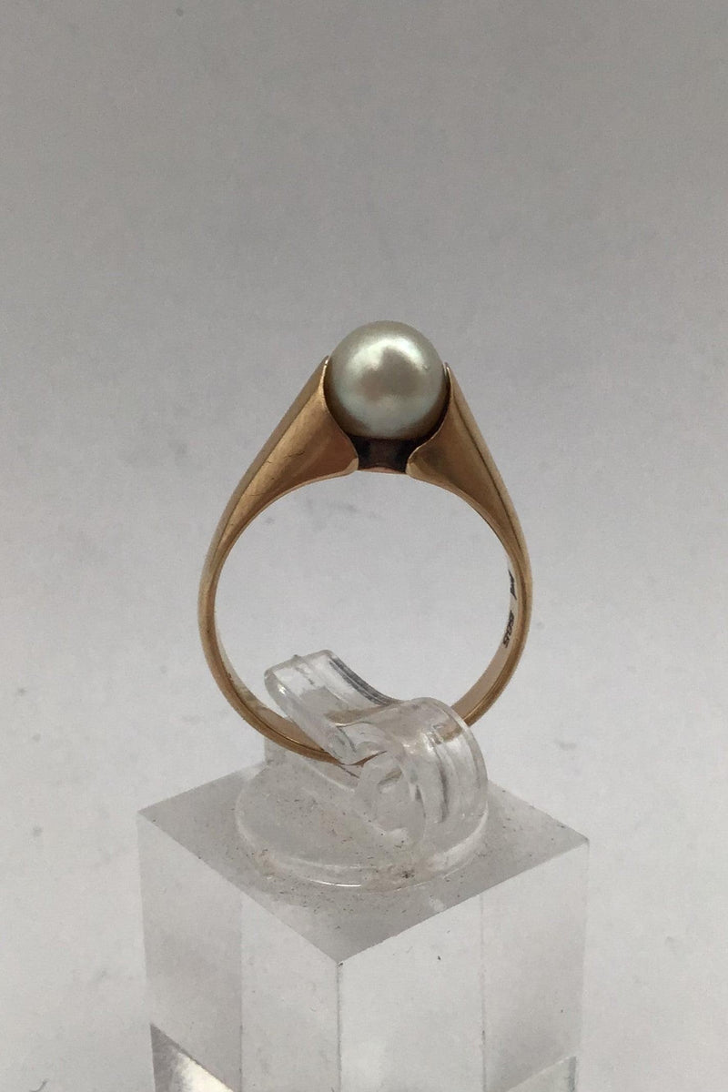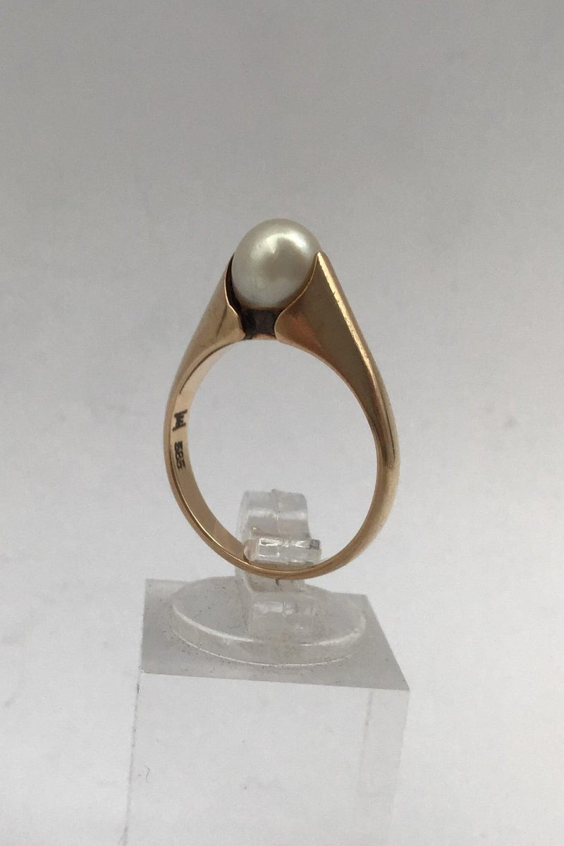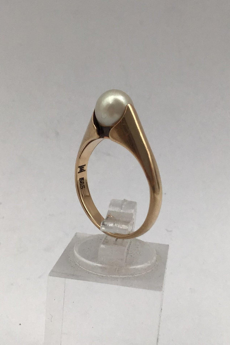 Hans Hansen 14K Guld Ring med Perle Måler Ring Str. 55 (US 7 1/4) Vægt 3.7 gr (0.13 oz)