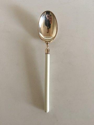 Hans Hansen Amalie Sølv Dessertske med Hvidt Emalje Håndtag. Måler 17,5 cm. (6.88 inch)