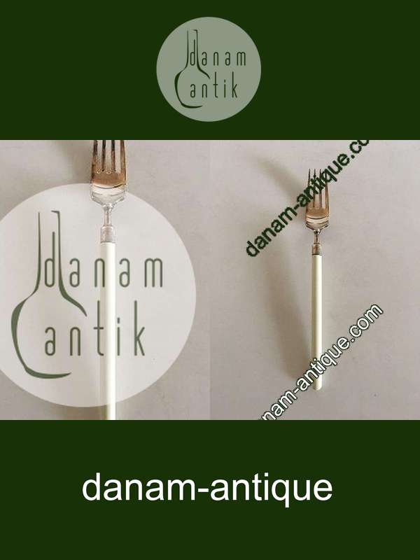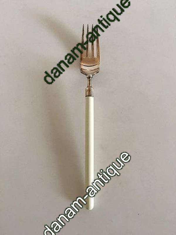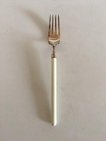 Hans Hansen Amalie Sølv Spise Gaffel med Hvidt Emalje Håndtag. Måler 19.5 cm (7,67 inch)
