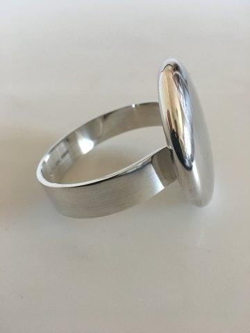 Hans Hansen Sterling Sølv Armring. Måler 6 cm i indre diameter. Det cirkelformede sølvornament måler 5 cm i diameter. Vejer 68 gram. I fin stand