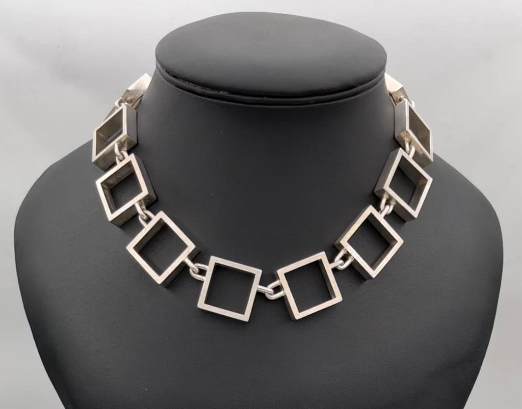 Hans Hansen Sterling Sølv Halskæde Måler 40.5 cm Vægt 133.3 gr (Firkanterne måler 2 cm x 2 cm)