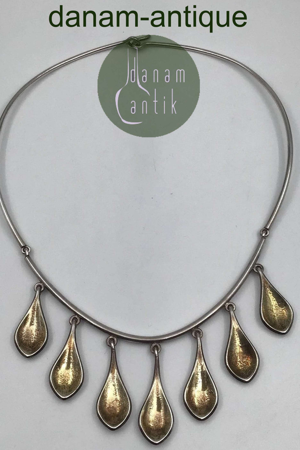 Hans Hansen Sterling Sølv Halskæde No 285 (Forgyldte dråber)