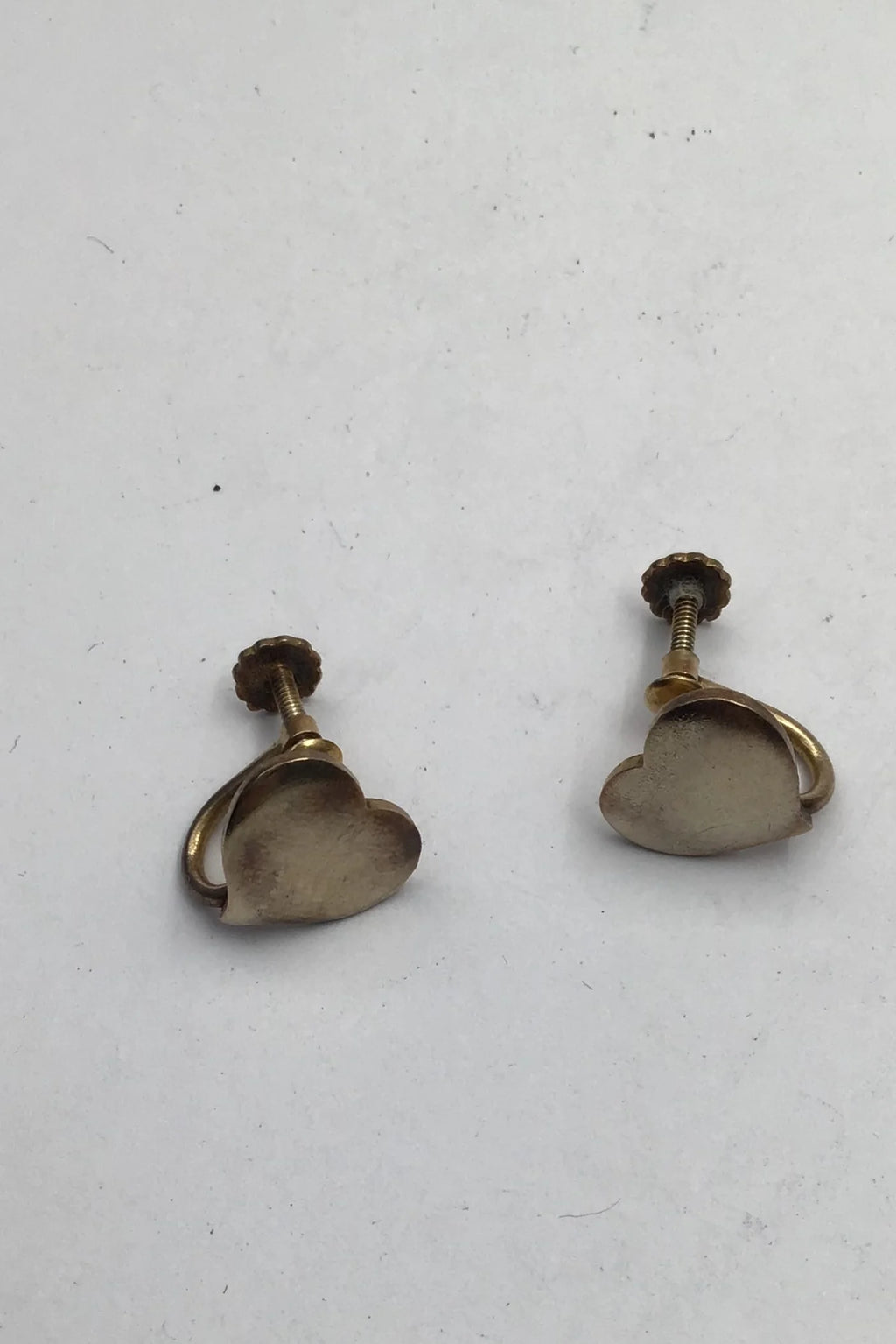 Hans Hansen Sterling Sølv Hjerte Øreringe (Skruer) Forgyldt Måler 1.2 cm x 1.2 cm (0.47 inch x 0.47 inch) Samlet vægt 4.65 gr (0.16 oz)