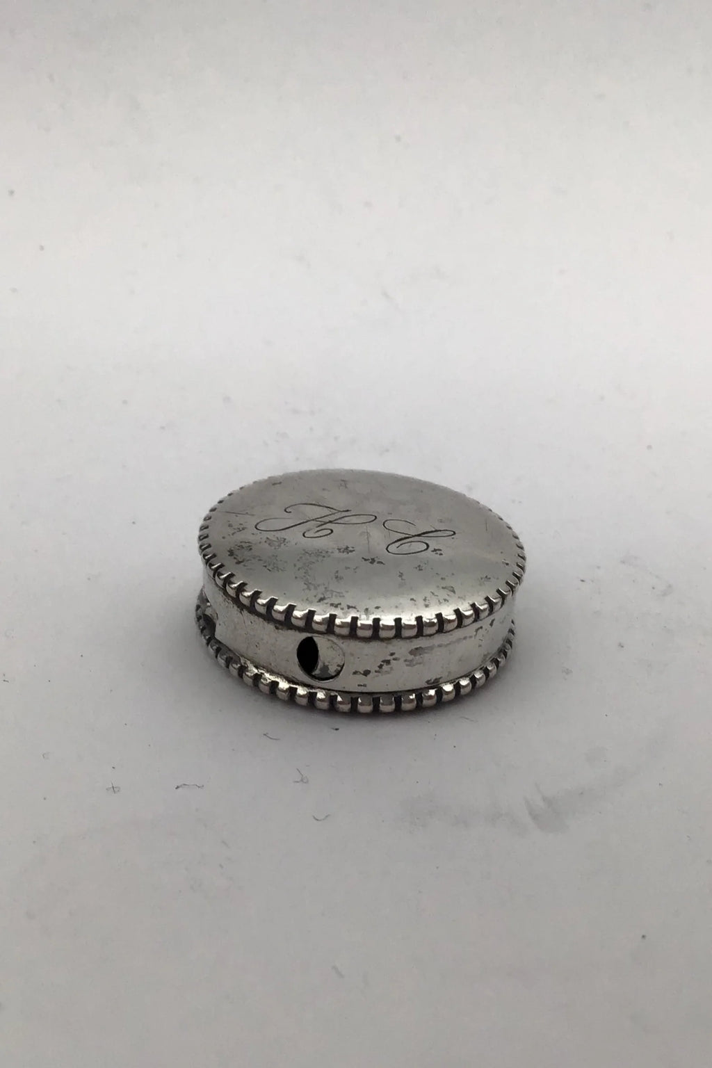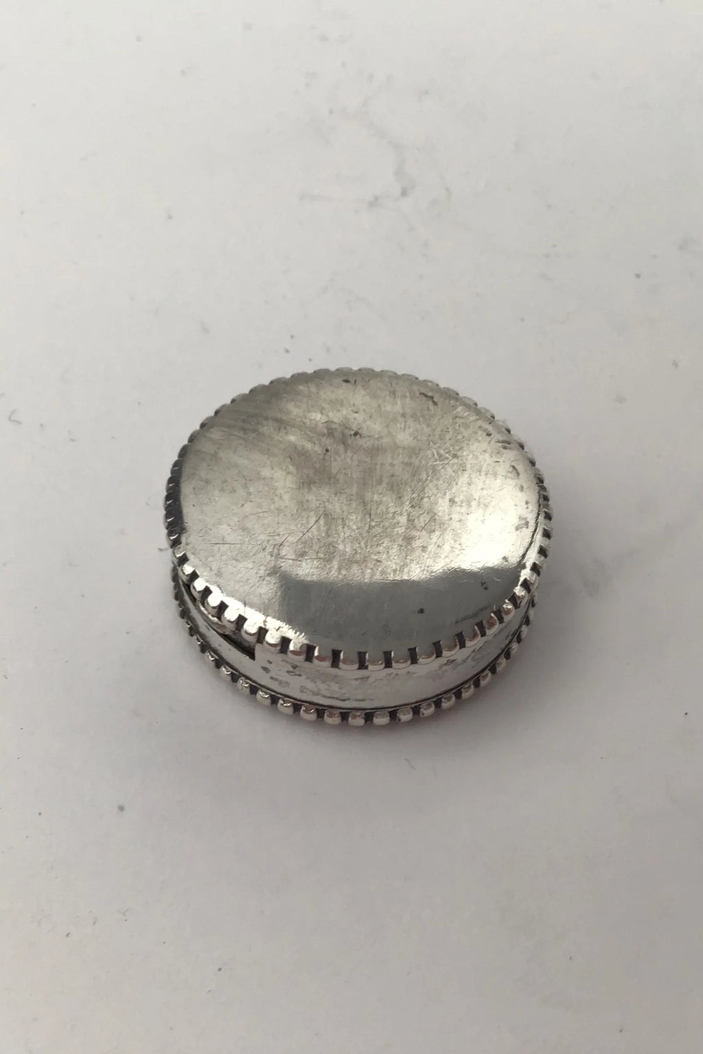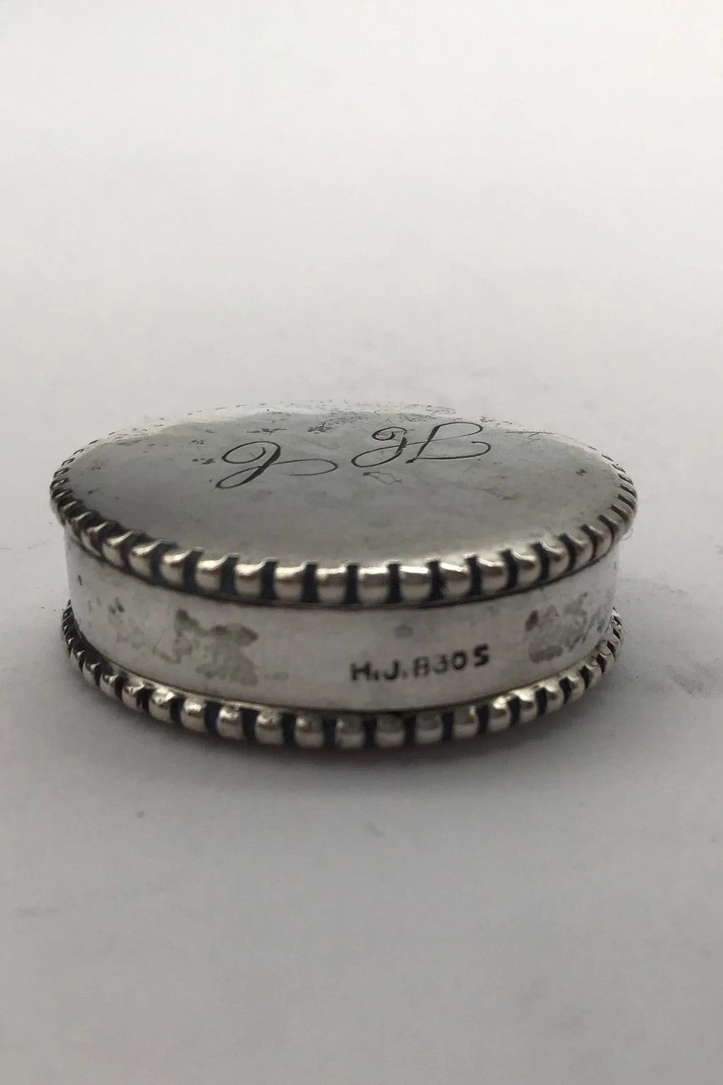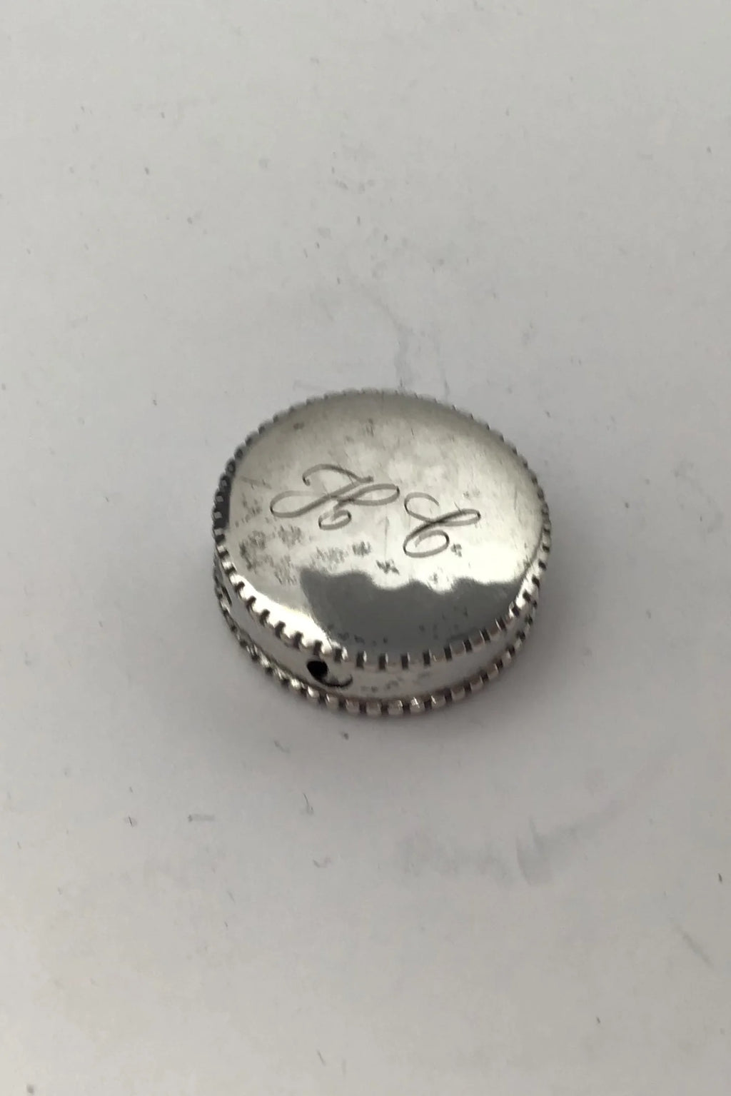 Hans Jensen Sølv Pilleæske Måler Diam 2.7 cm (1.06 inch) Vægt 7.5 gr (0.26 oz) (Gravering)