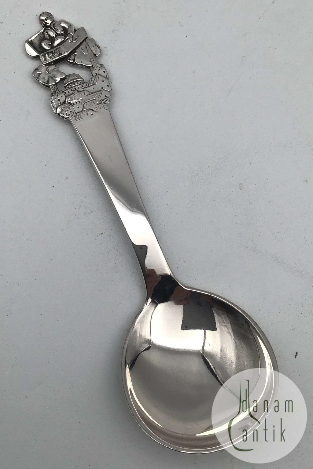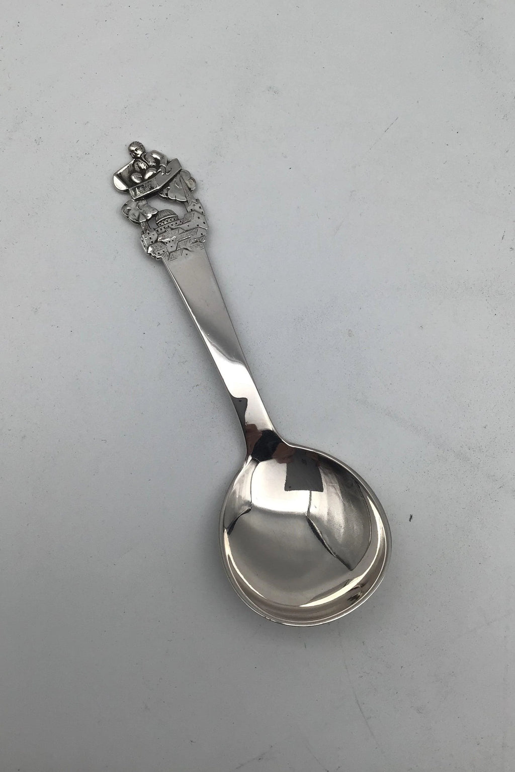 H.C. Andersen Eventyr Sølv Barneske Den flyvende kuffert (Rundt Laf)  Måler 15 cm (5.90 inch)