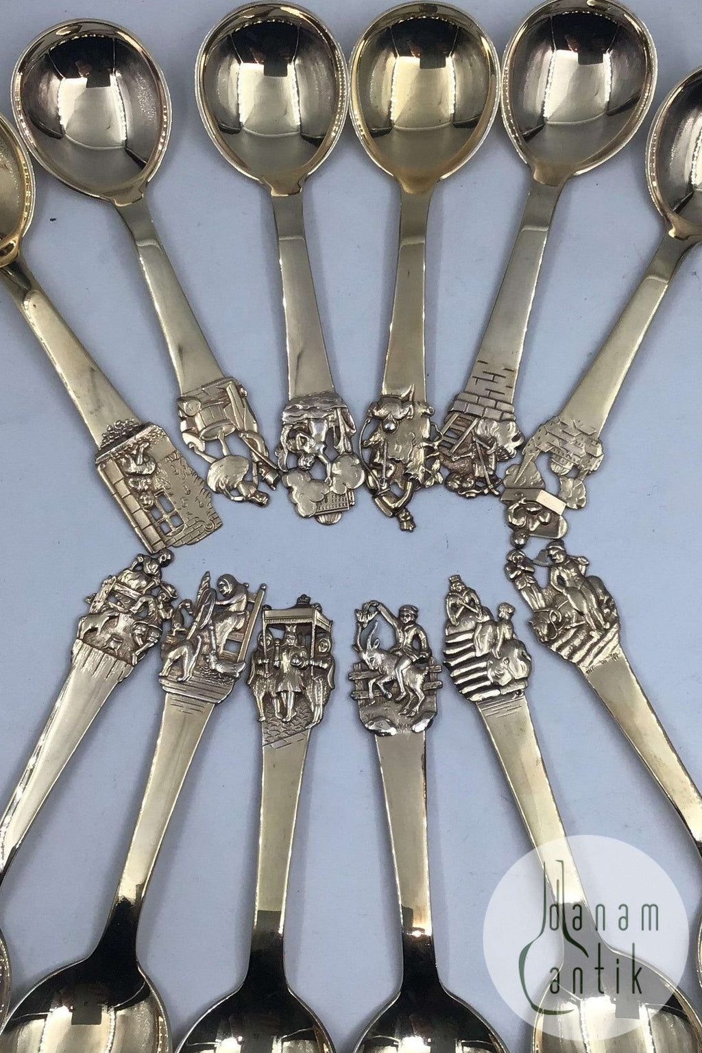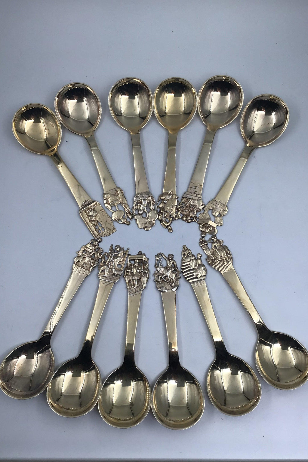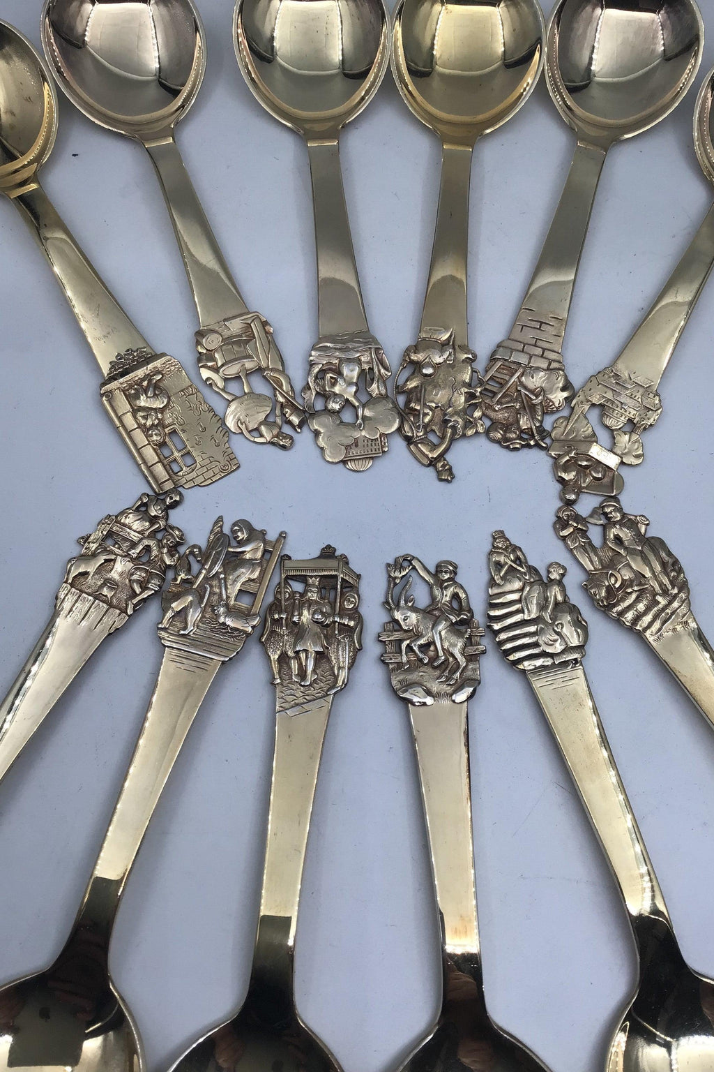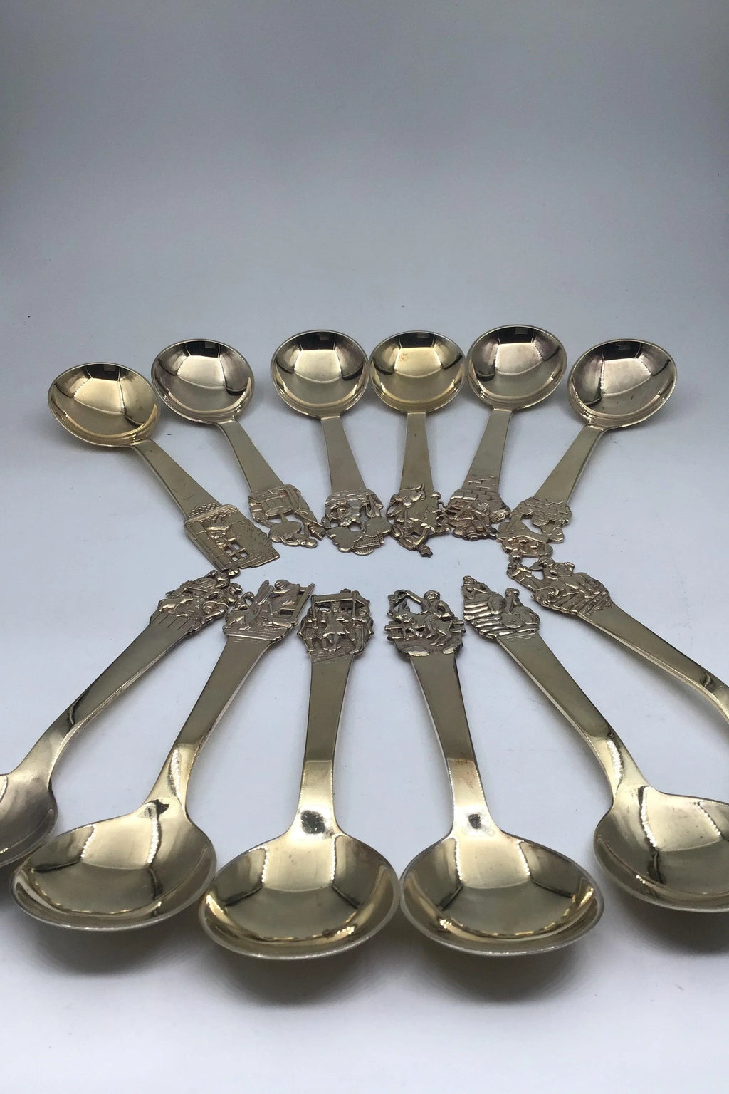 H.C. Andersen Eventyr Sølv Forgyldt Barneskeer/Suppeskeer Sæt (12)