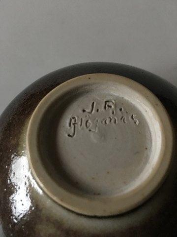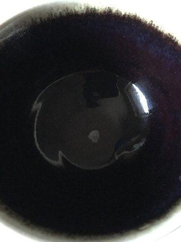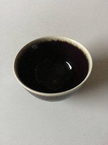 Höganäs Stentøjsskål. I fin hel stand med flot brunlig til dyb auberginefarvet glasur. Har en lille brændingsfejl i bunden af skålen. 6.5 cm H. 9 cm Ø.