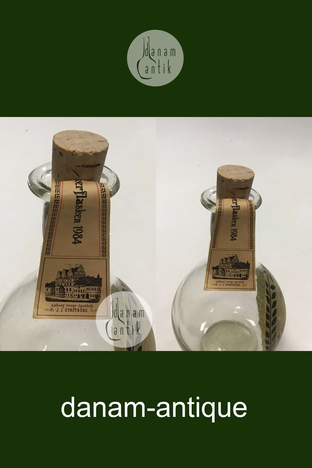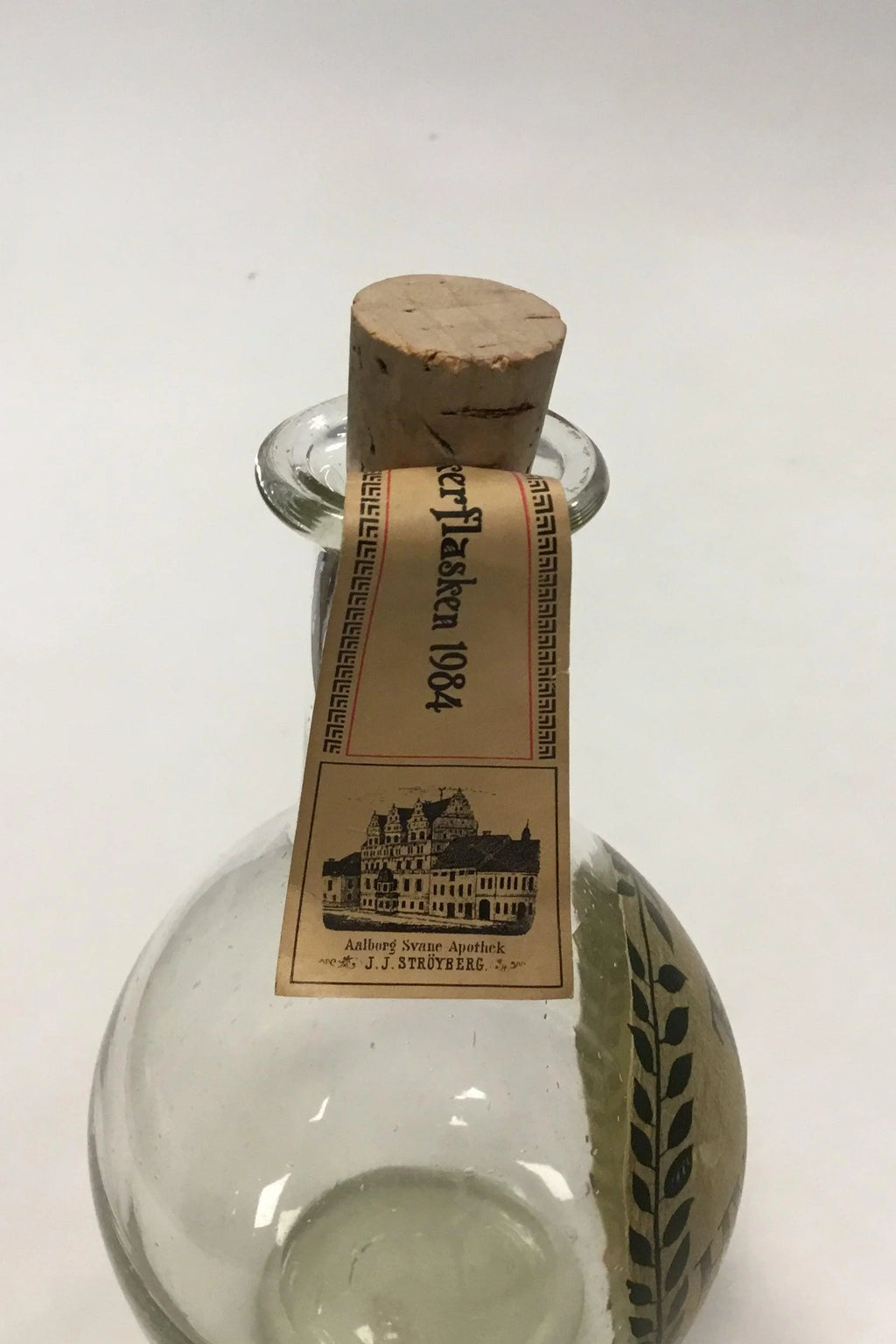 Holmegaard Apotekerflasken, krukke med tekst TR KYOSCYAM fra 1984