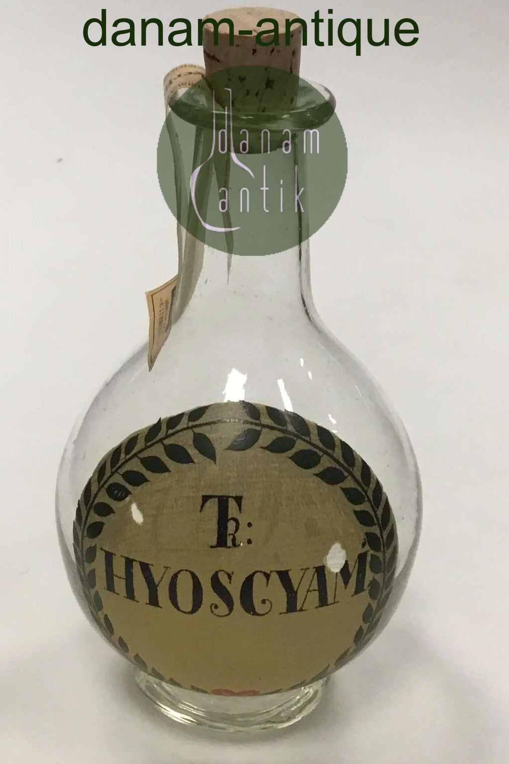 Holmegaard Apotekerflasken, krukke med tekst TR KYOSCYAM fra 1984.