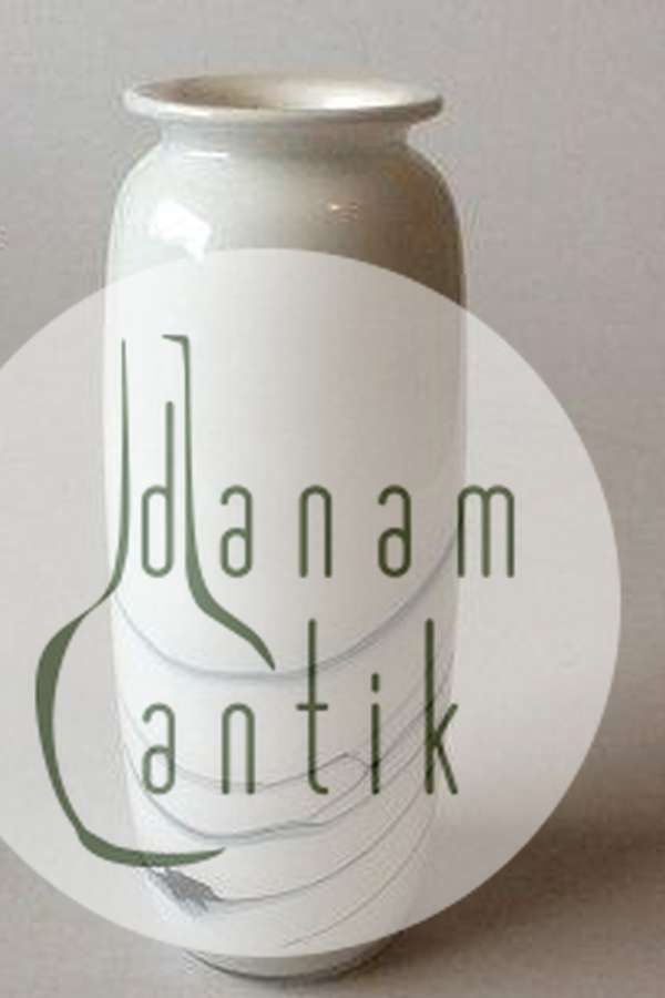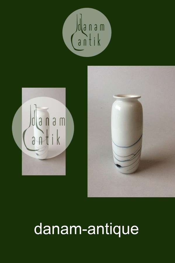 Holmegaard Atlantis vase. Hvid med blå dekoration