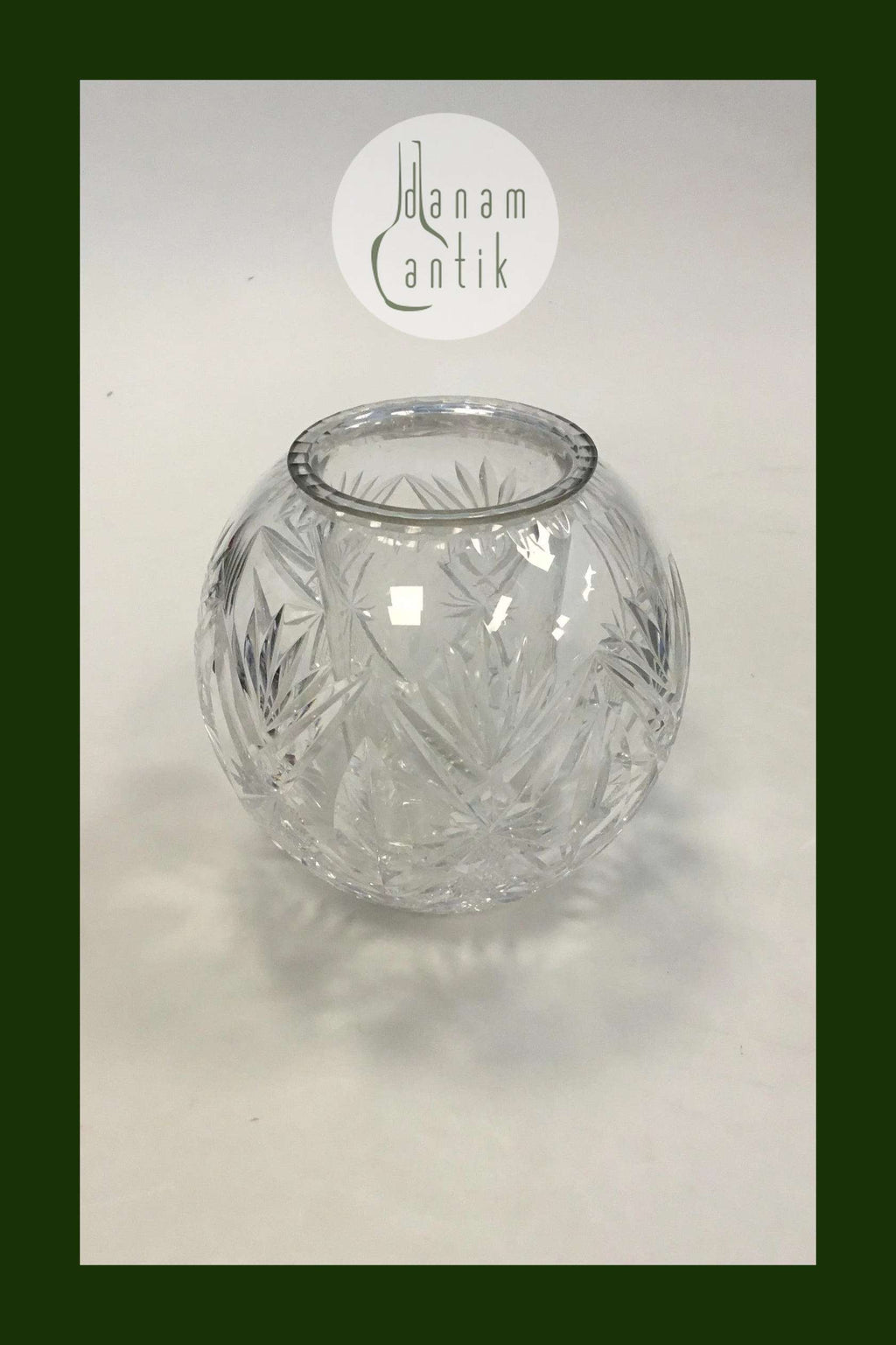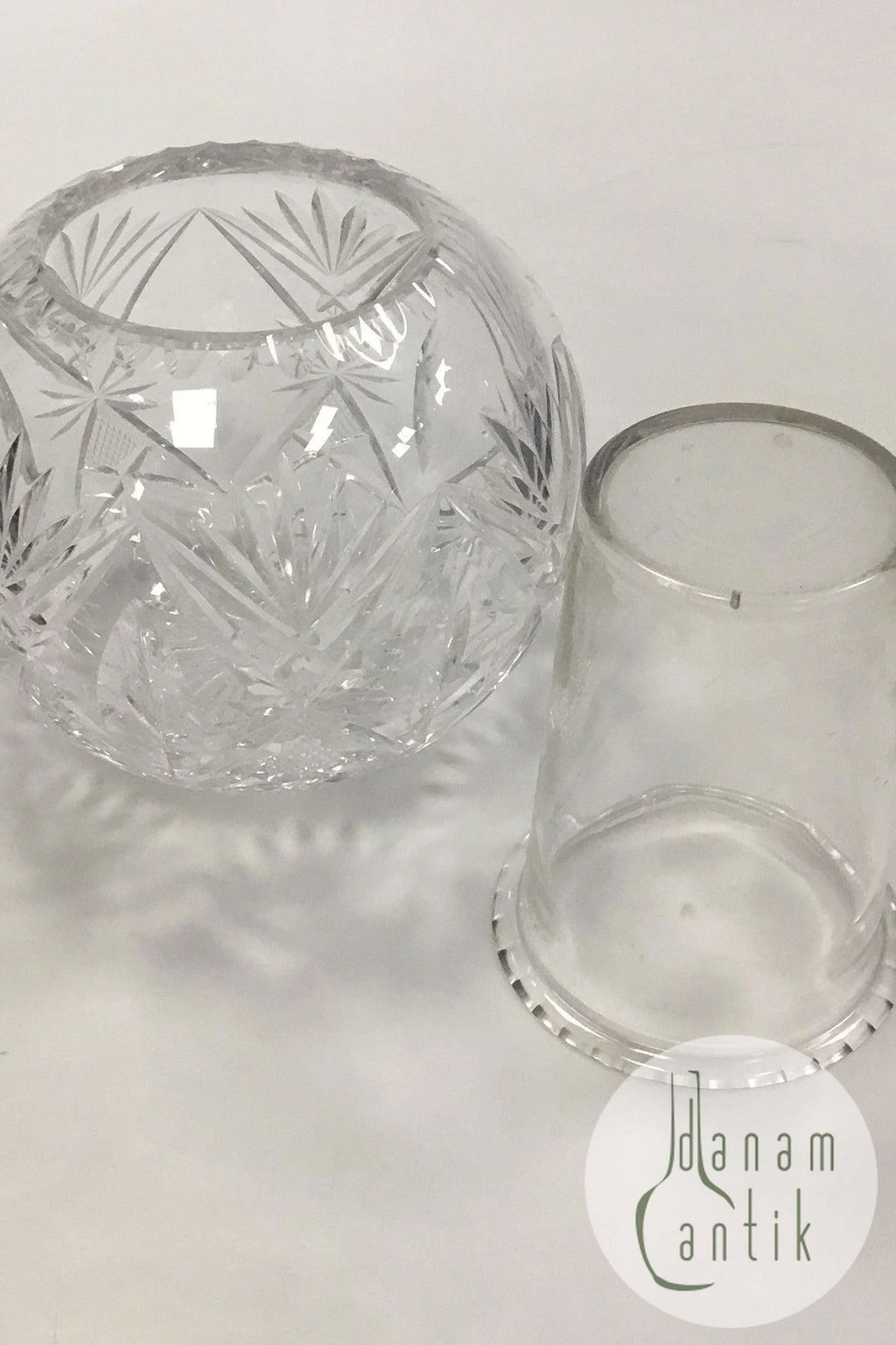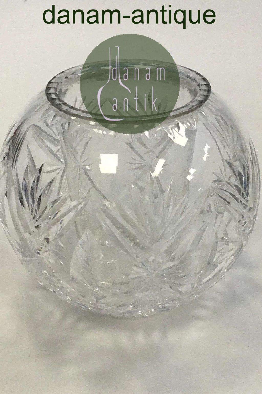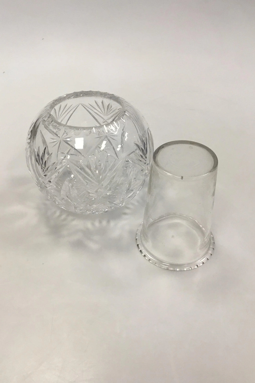 Holmegaard Krystalglas Kugleformet Vase med indsats(Kaviarskål?) og slibninger. Måler 12 cm x  15 cm dia.(4 23/32 in.. x 5 29/32 in. dia)