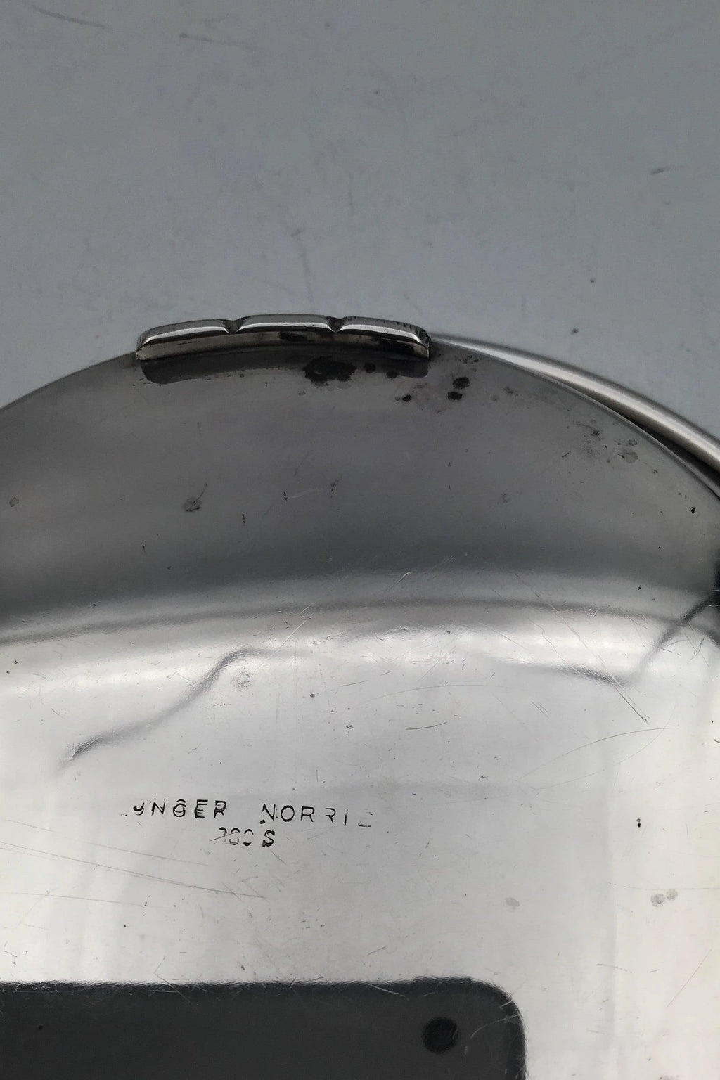 Inger Norrie Sølv Flaskebakke. Måler Diam 14.5 cm (5.70 inch) H 3.5 cm (1.37 inch) Vægt 148 2 gr (5.23 oz)