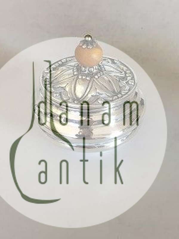 Kay Bojesen Sølv lågdåse med ravknub. Måler 6cm høj og 6,5cm i dia.