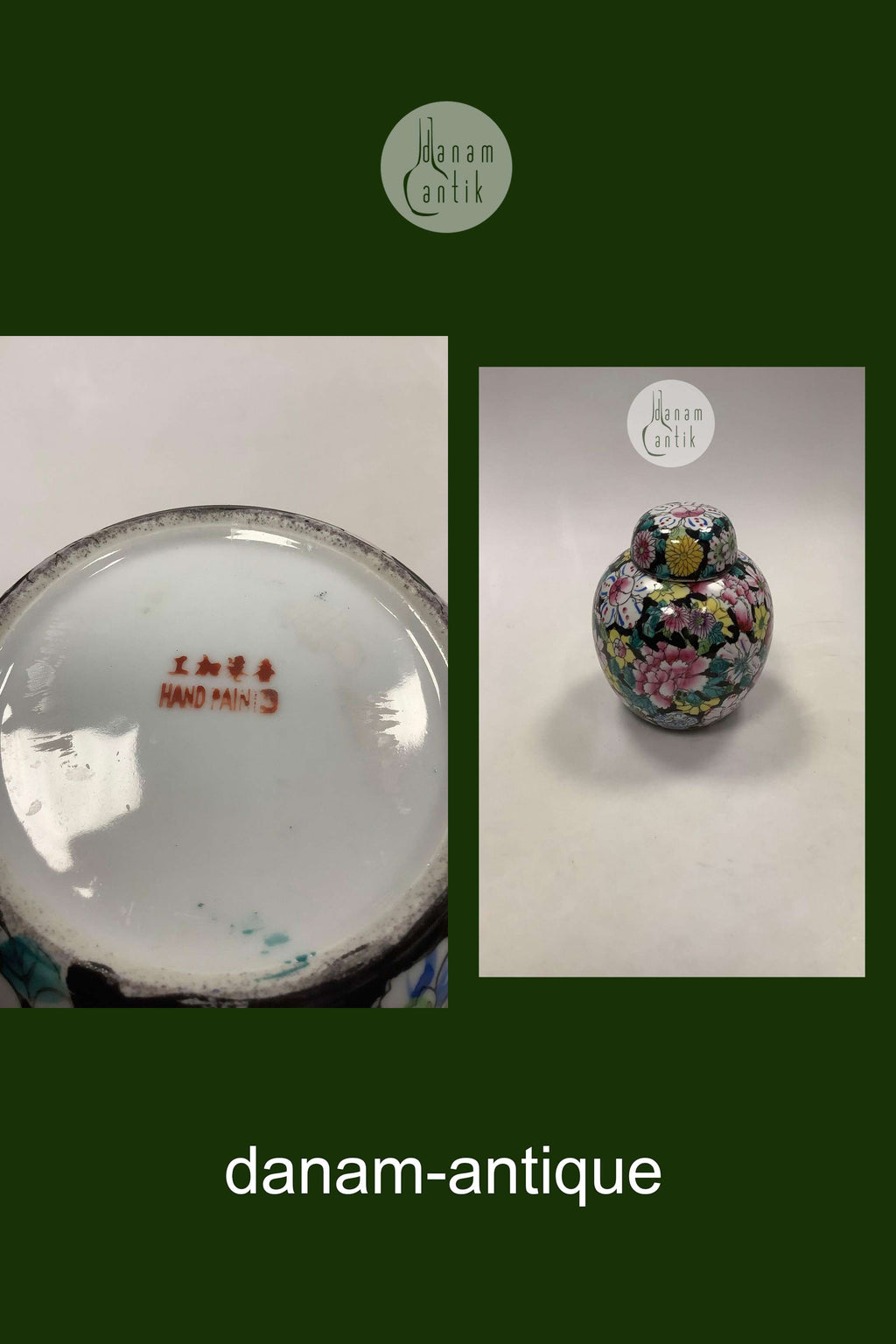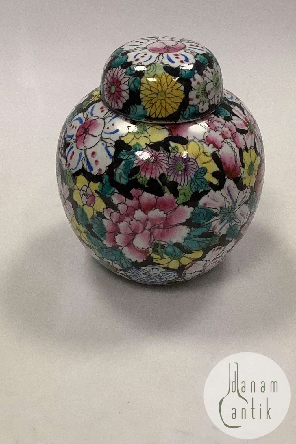 Måler 15 cm / 5.91 inch. Skår indvendig i låget.