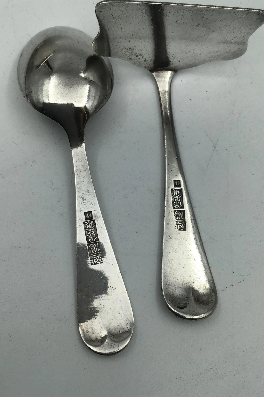 Kinesisk Sølv Barnebestik i vestlig stil (Ske og Skubber) Måler 9.8 cm og 7.5 cm(3.85 inch og 2.95 inch) Samlet vægt 34 gr/1.20 oz