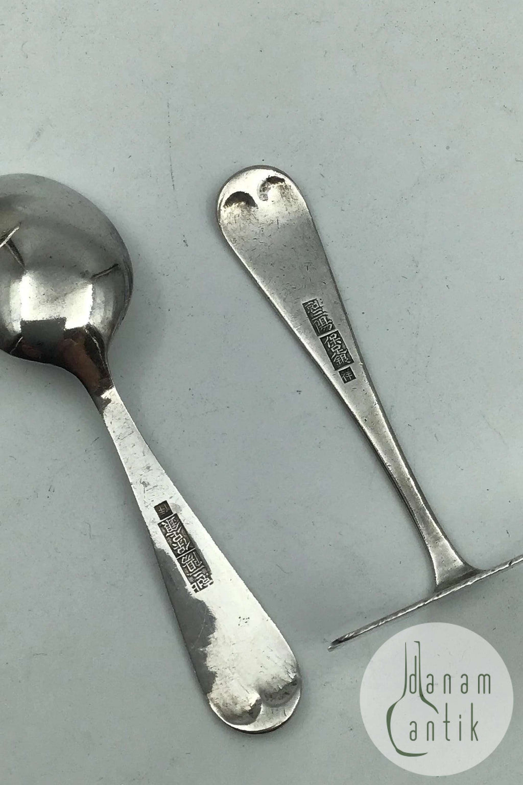 Kinesisk Sølv Barnebestik i vestlig stil (Ske og Skubber)