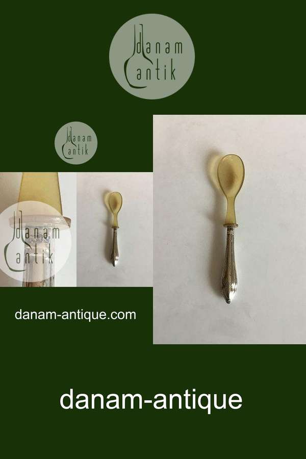 Lille serveringsske i Sølv med blad af horn. Måler 14,8 cm. Slidt