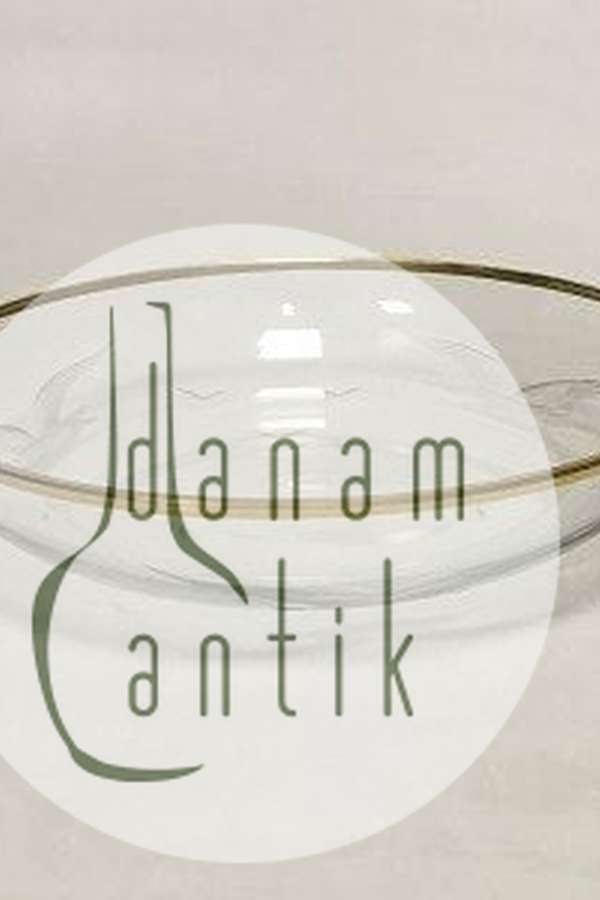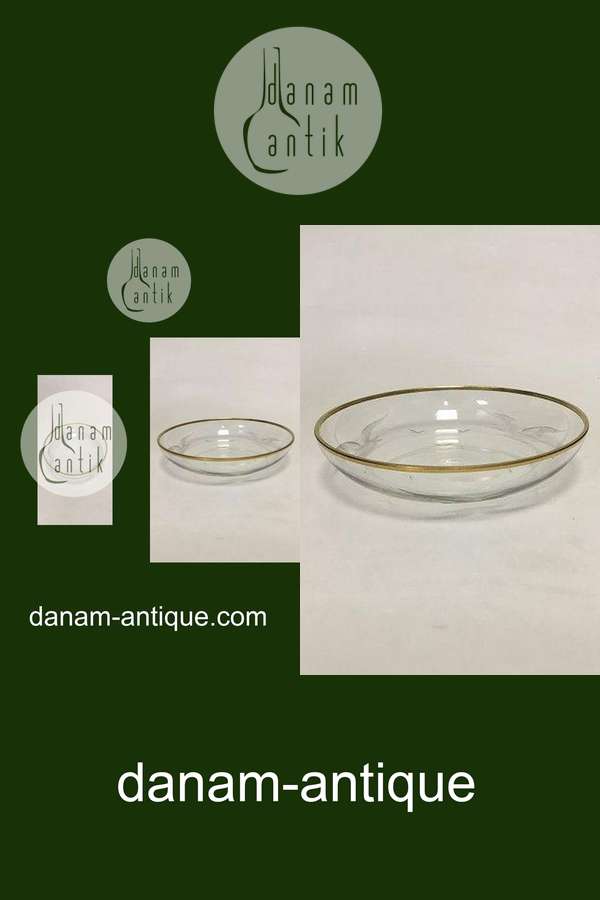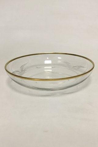 Lyngby Måge glasassiet med slibning og guldkant. Måler 15,5 cm dia. Let slitage