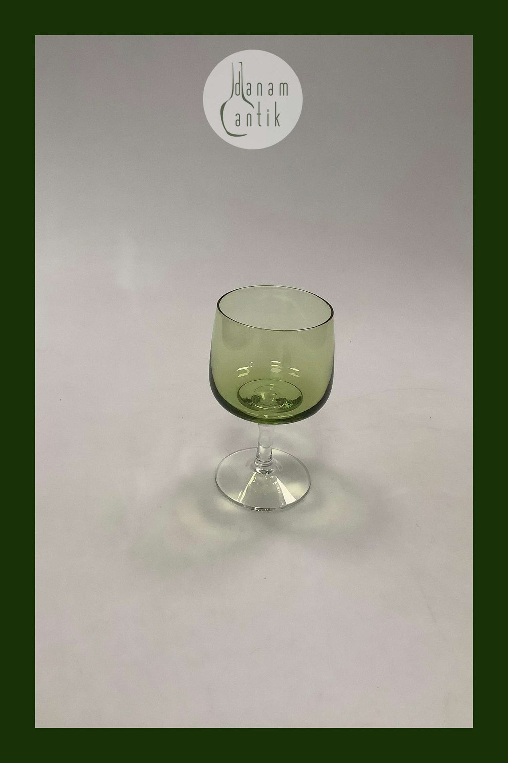 Mandalay Grøn Hvidvinsglas, Lav Kumme. Holmegaard. 11.8 cm H. Design af Per Lütken 1962.