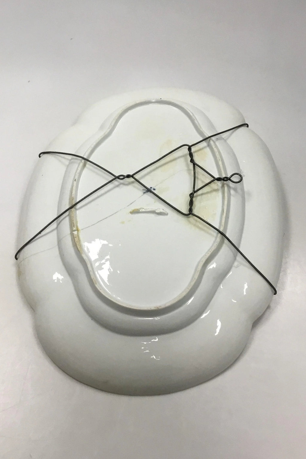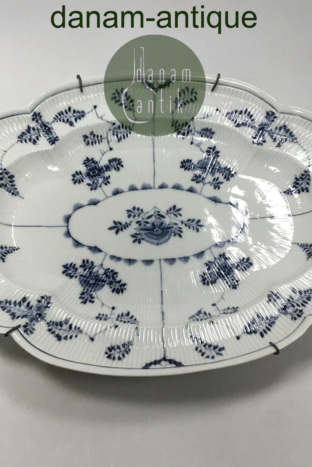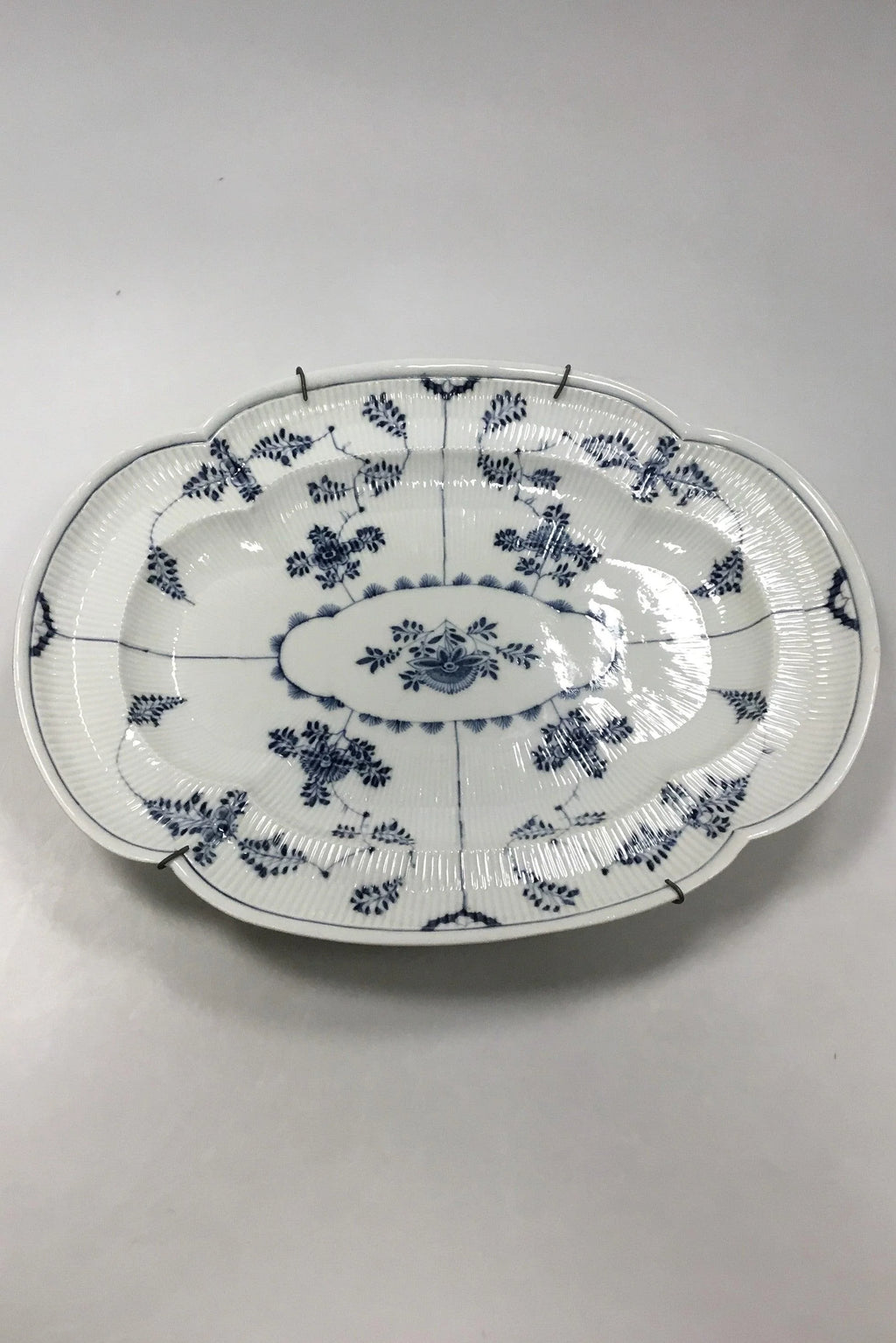Meissen Stort riflet fad med blå dekoration. Måler 47,5 cm x 36 cm ( 18 45/64 in x 14 11/64 in. ) Revner og reparation