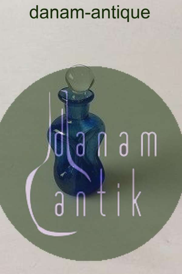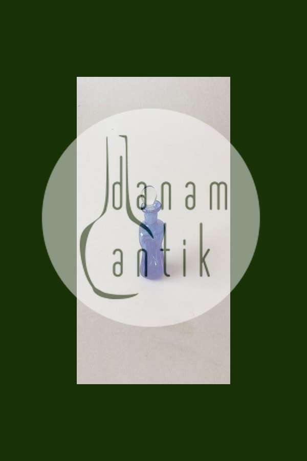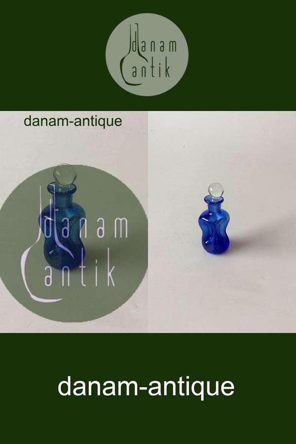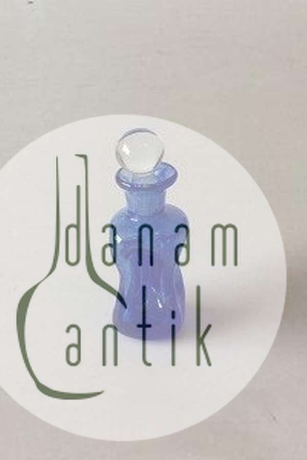 Mini Holmegaard / Kastrup Glasværk Lille Kluk Kluk Karaffel i Blåt Glas med klar prop. 8 cm Høj. I fin stand. Nok lavet som fusk