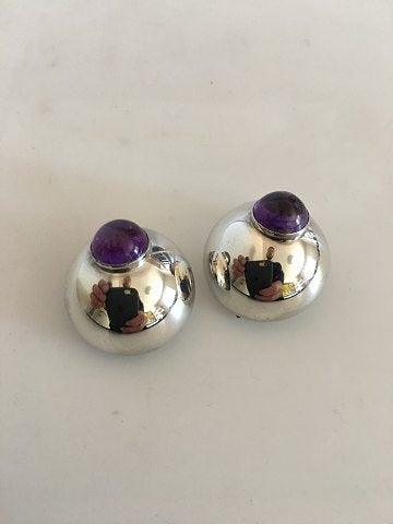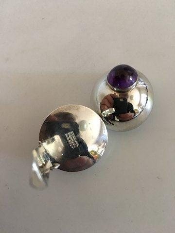 N.E. From Sterling Sølv Øreklips med Ametyst. Måler 2 cm diameter. Vejer tilsammen 15 gram. I fin stand.