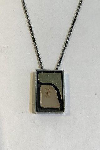 Ole Waldemar Jacobsen Sterling Sølv Halskæde/ Vedhæng med guldindlæg