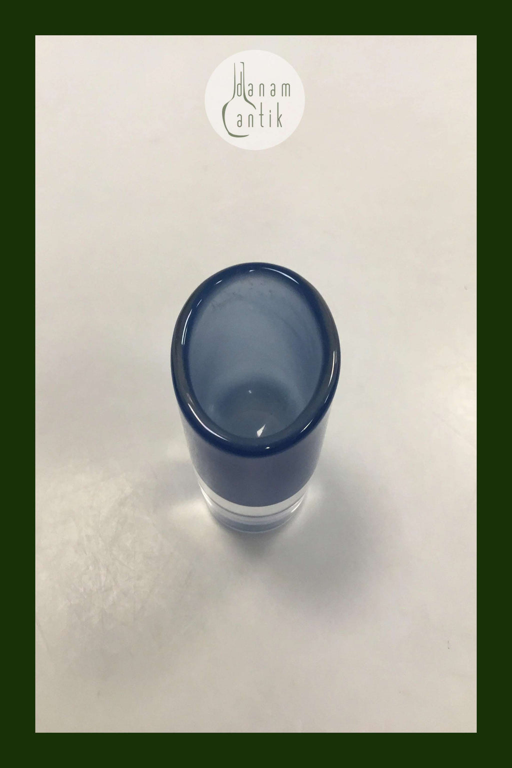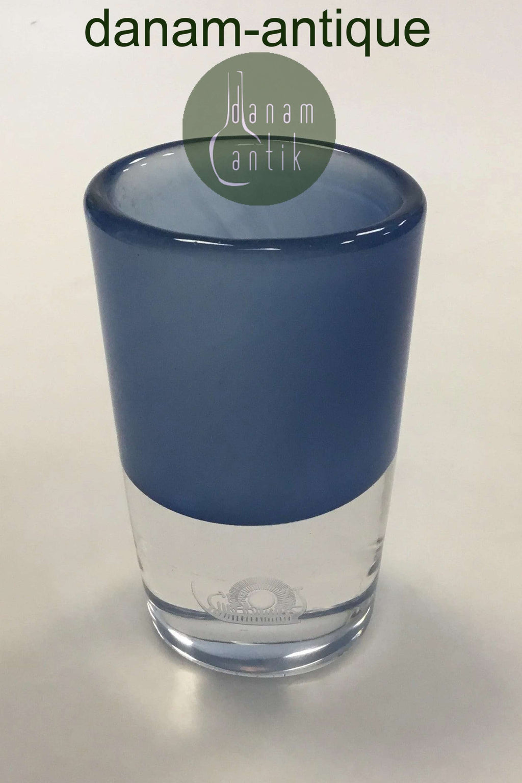 Orrefors Glasvase med logo fra LYFA Belysningsvirksomhed. Måler 5,5 x 7,5 x 12 cm (2 11/64 x 2 61/64 x 4 23/32 in).