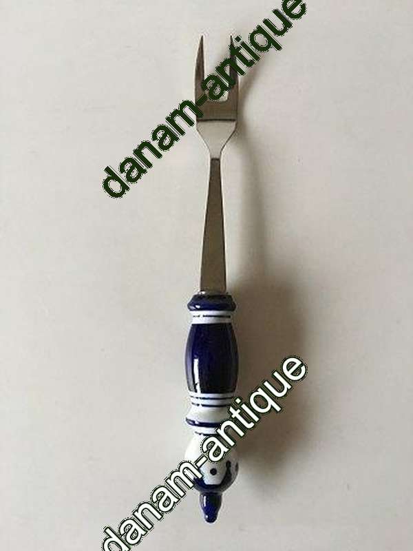 Rosenthal Blå Bjørn Wiinblad Siena Stor Kødgaffel i Keramik og Rustfrit Stål