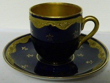 Rosenthal Kop & underkop i Guld og Blå. Måler 5cm og er i god stand.