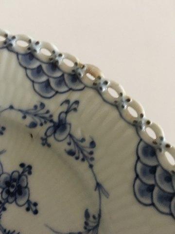 Royal Copenhagen Antik Musselmalet Helblonde Tallerken. Måler 23.5 cm dia. / 9 1/4 in. Er skåret, og repareret et sted på blondekanten. Har desuden et par hårrevner.
