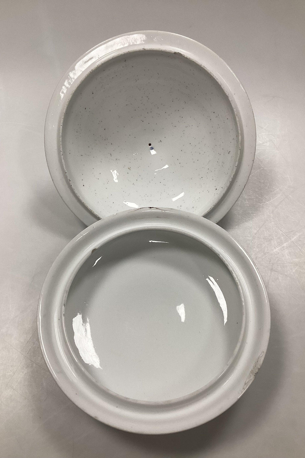 Et skår inderst i låget, og flere skår i underdelen.