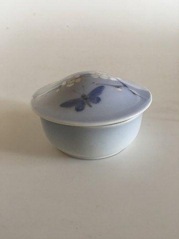 Royal Copenhagen Art Nouveau Lågskål med Blomst og Sommerfugl Motiv No 1. 4.5 cm H. 9.5 cm Ø. I pæn hel stand. 2. Sortering.