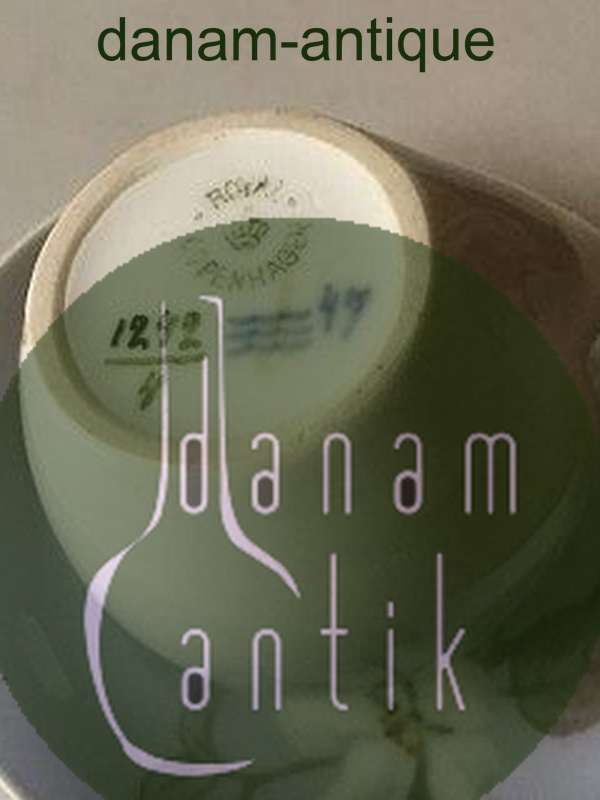 Royal Copenhagen Art Nouveau Lille Højhankskop med Underkop No. 1242/4. Kop og underkop er i fin hel stand. Kop måler 5.2 cm H (8 cm målt til hankens spids). 2. Sortering.