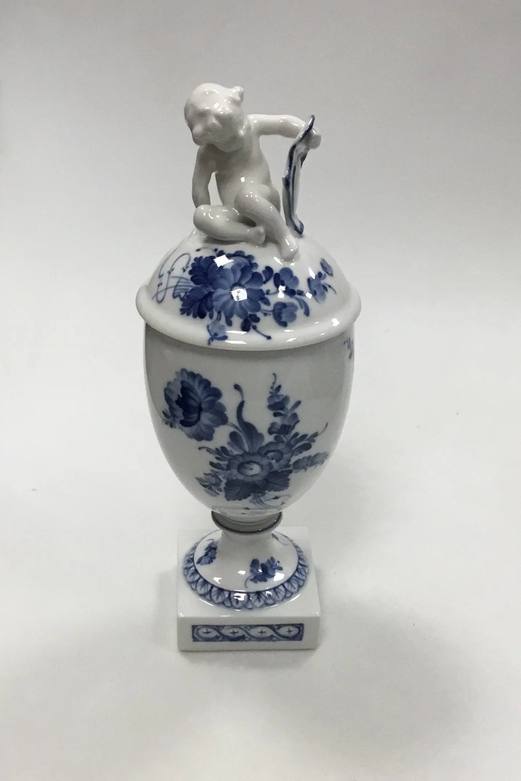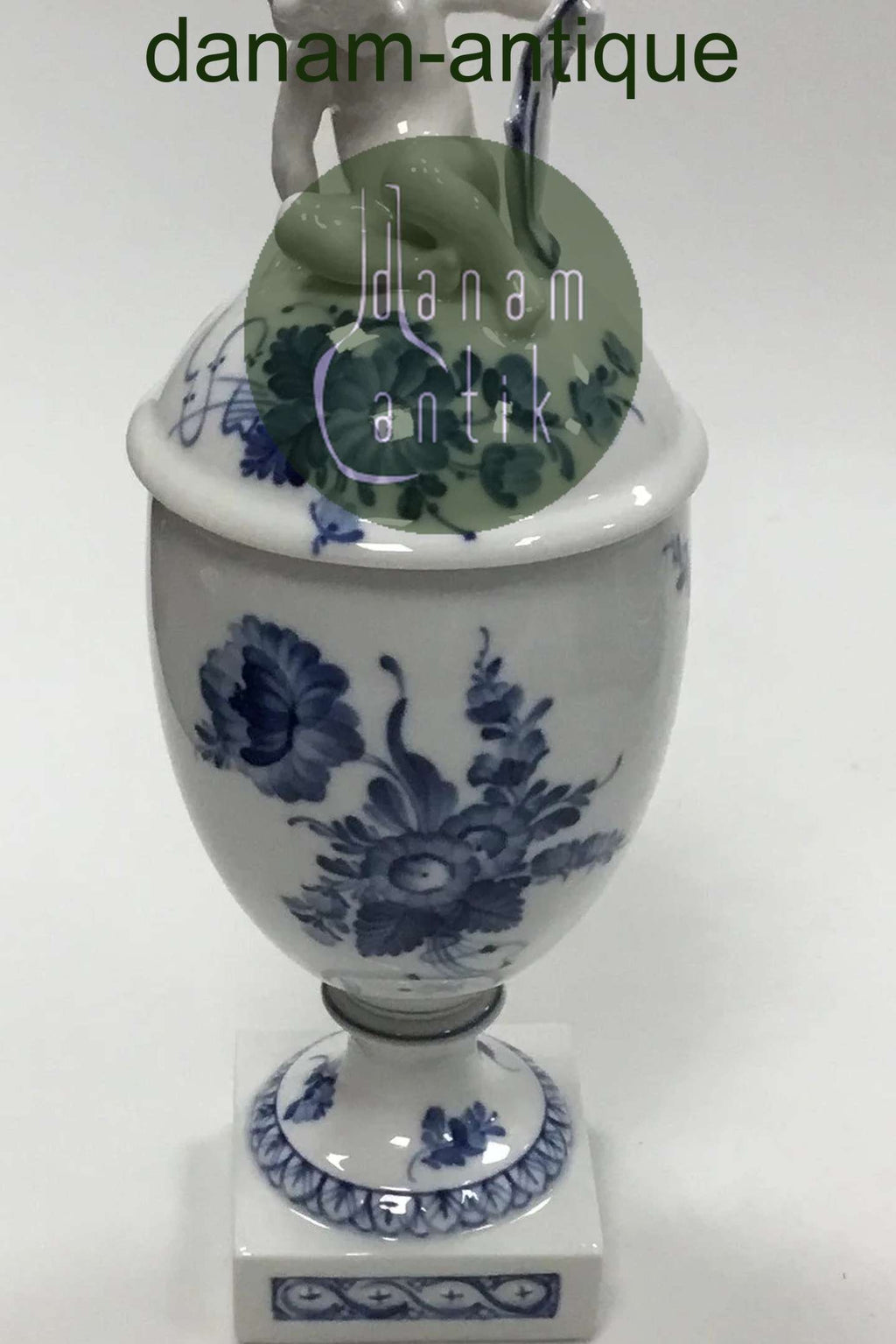 Royal Copenhagen Blå Blomst Svejfet Lågpokal med putti på låger No 1754. Måler 29 cm ( 11.42 in. )