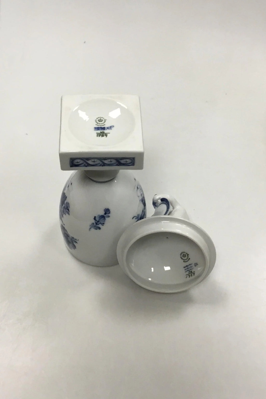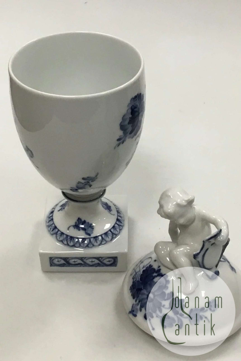 Royal Copenhagen Blå Blomst Svejfet Lågpokal med putti på låger No 1754