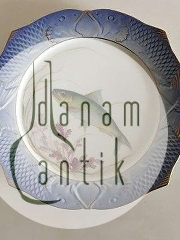 Royal Copenhagen Blå Fisketallerken med Guld No 1212/3002