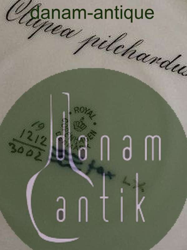 Royal Copenhagen Blå Fisketallerken med Guld No 1212/3002. Med Clupea Pilchardus. 23 cm. I perfekt stand