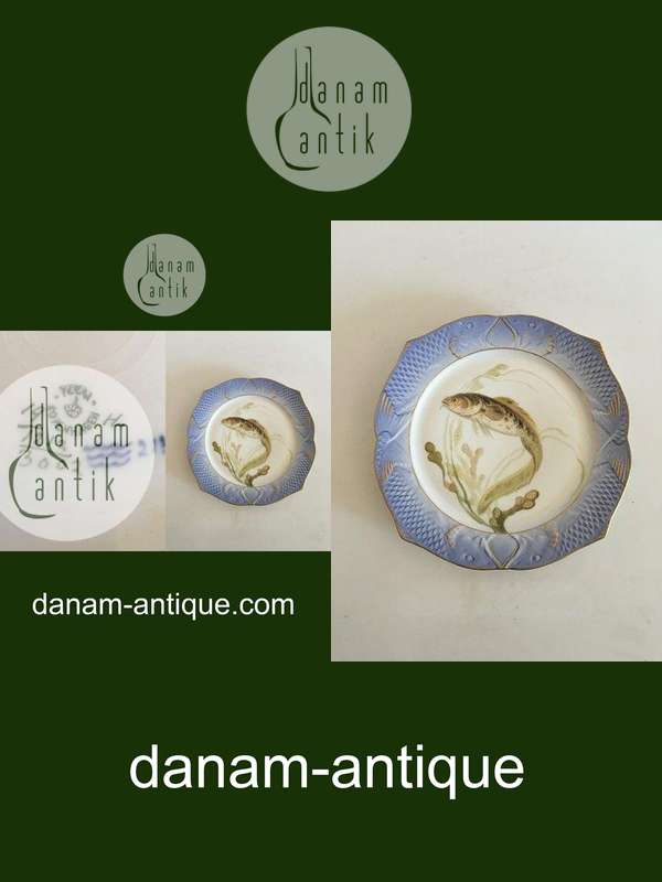 Royal Copenhagen Blå Fisketallerken med Guld No 1212/3002 med Mustela Fluviatilis