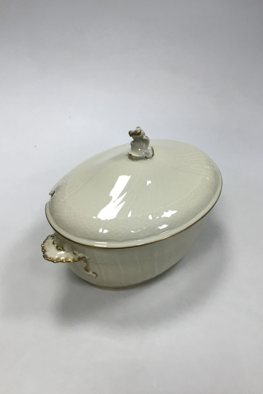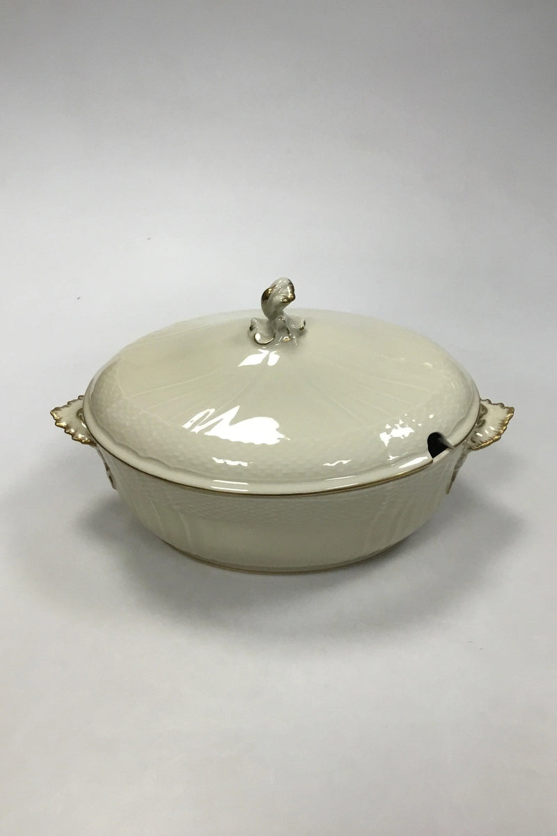 Royal Copenhagen Creme Svejfet med Guld (Stel 1235) Lågfad No 1666. Måler 32 x 19,5 x 19 cm (12 19/32 x 7 43/64 x 7 31/64 in).