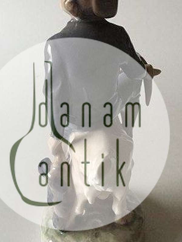 Royal Copenhagen Figur Dreng på ged No 1228. Måler 14 x 18 cm (5 33/64 x 7 3/32 in). Designet af Christian Thomsen. Er i god stand. Hans Christian Andersens eventyr "Klodshans".