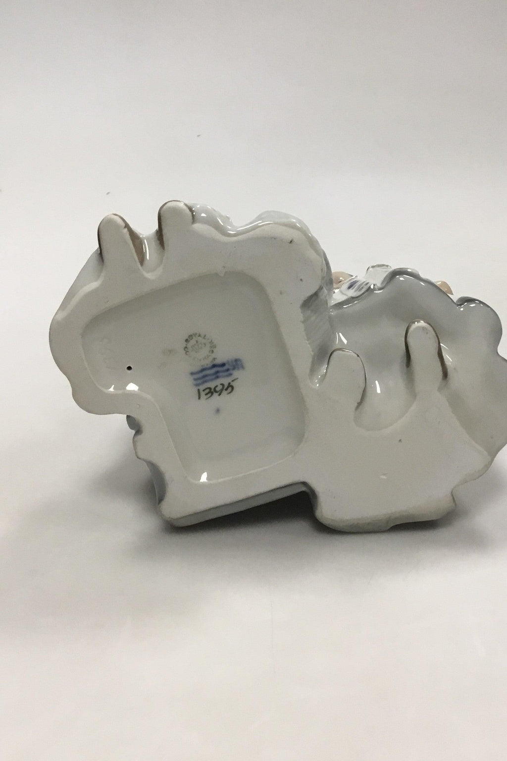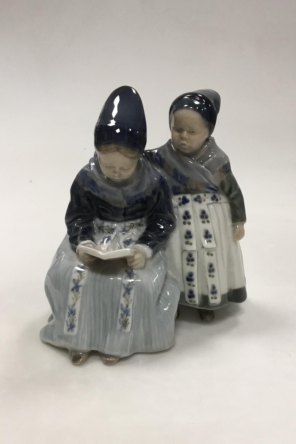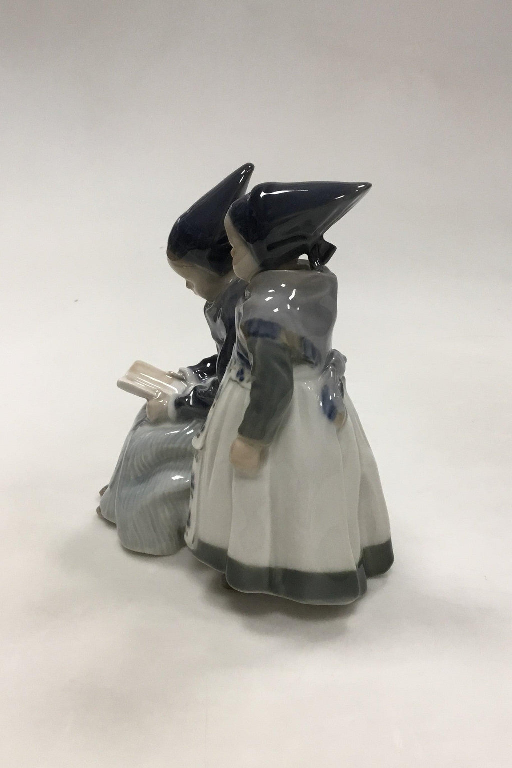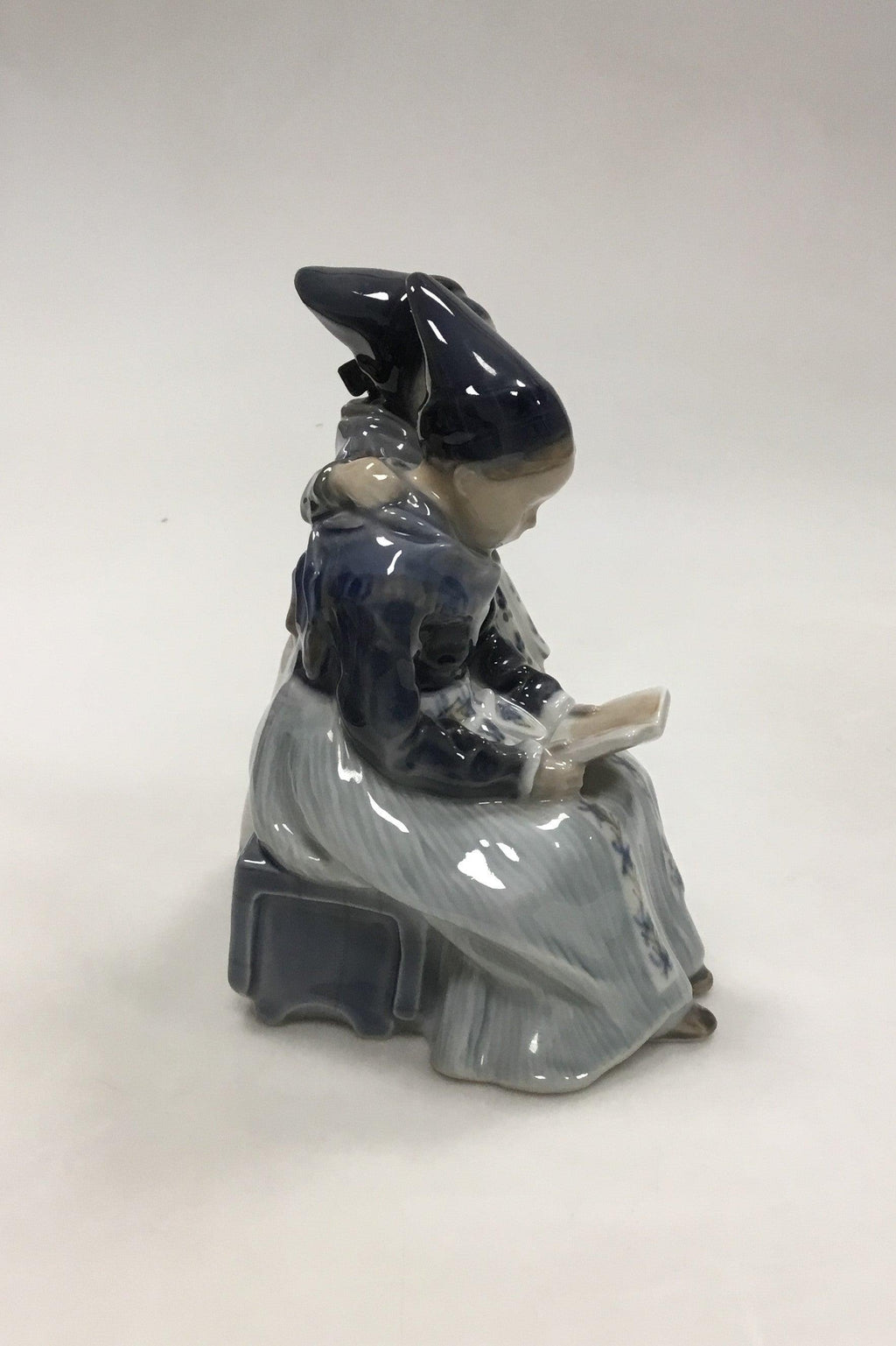 Royal Copenhagen Figur Læsende Amagerpiger No. 1395. Måler 17 cm ( 6 11/16 in. ) og er i god stand. Designet af Lotte Benter