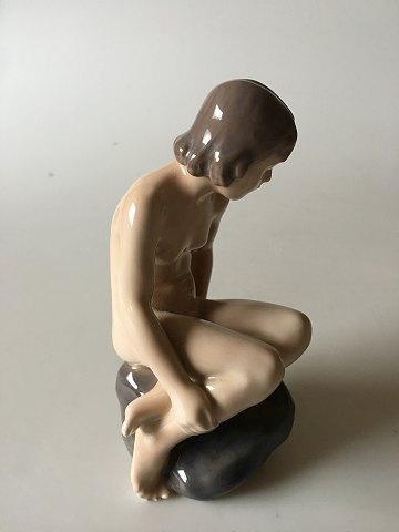 Royal Copenhagen Figur Pige på Sten No. 4027. Designet af Ada Bonfils.